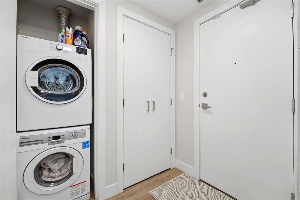 This gorgeous condo has it all! The perfect blend of location, lifestyle, and value in this newer building THE DRAKE, situated in the HEART of downtown, the BELTLINE. Your thoughtfully designed unit offers a bright, modern interior paired with low condo fees—making it an ideal choice for both homeowners and investors with an OUTDOOR LIVING SPACE that is so hard to find that feels like having an extension of your living space without the added cost! This is one that people wait for! It is a beautiful, modern space, that is bright and open with gorgeous upgraded vinyl plank floors, a modern kitchen with stainless steel appliances and a sit-up peninsula, granite countertops allowing tons of prep space and an area youll love to cook in. These units are built with high ceilings in most living areas creating a roomy, expansive feel. The living area has a stone textured feature wall with a wall of glass windows and your deck doors, leading outside and letting all of the light in! Outside you have a private deck space with upgraded railings and low maintenance appeal with a view to enjoy your morning coffee, and extended living space outside creating year round enjoyment and giving the feel of a house -but in a condo, and without the cost! The outdoor space can house a decent size patio set and outdoor entertaining room for you and your guests to relax in. Back inside you have your bedroom with dual closets and light tones, giving you a stunning landscape to wake up to each day. Your 4 pc bath includes a modern vanity and tub/shower combo and off of the entry way is an in-suite laundry that completes the unit. What else could you need? The unit comes with a titled underground parking stall and located just off of 17th Ave (otherwise known as ‘the pulse of Calgary) in the Beltline neighbourhood that has it all! Luxury salons, quaint coffee shops, executive businesses and an ensemble of choice restaurants are just a few amenities to call this neighborhood home. The Drake is one of the newer condo projects to hit this popular location with water smart plumbing, and non-toxic paint finishes and are just a few features that help make the Drake condos eco-friendly as well. Whether you’re looking for convenience, comfort, or smart urban living, this condo delivers it all—without compromising on value. Dont miss out on viewing this stunning condo and making it yours. Its a "unicorn" of condos and wont last!