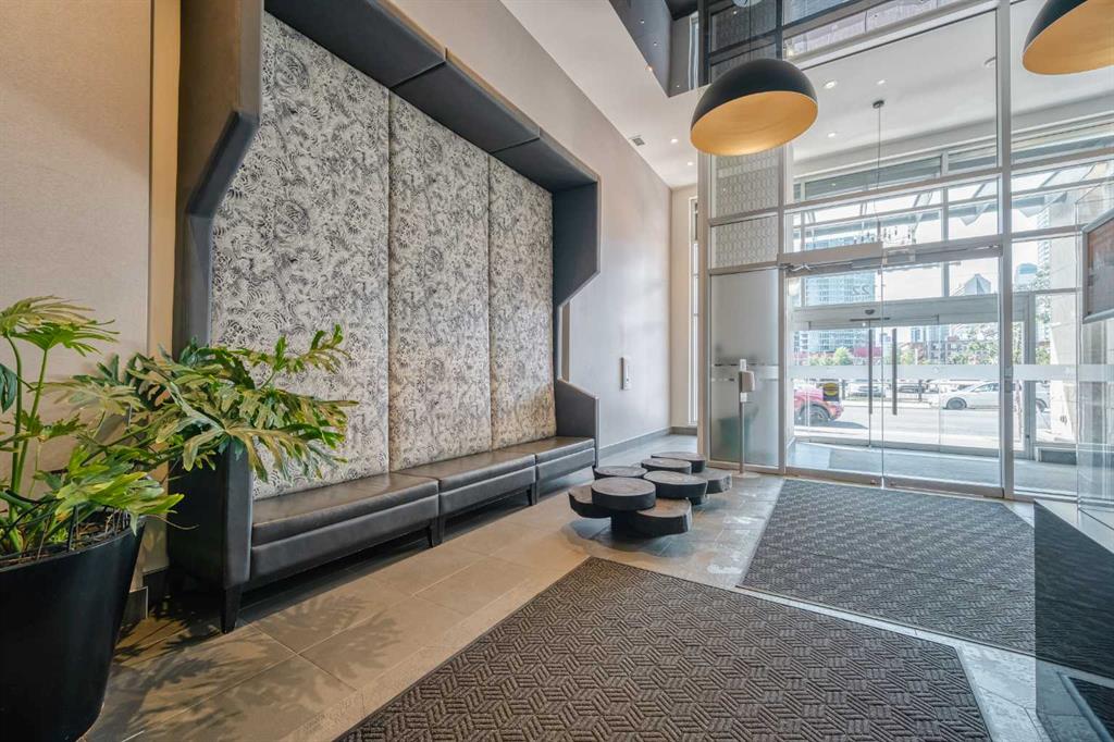 The building offers exceptional amenities: a fully equipped gym, rooftop patio with BBQs, social lounge, workshop with tools, concierge service, and on-site security. Unbeatable location—just steps from Downtown offices, Stampede Park, Sunterra Market, C-Train, and Calgary’s vibrant river pathways.