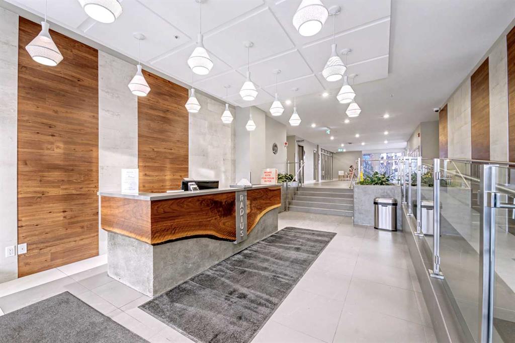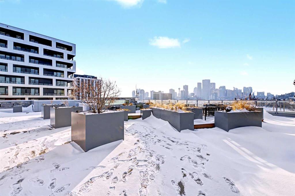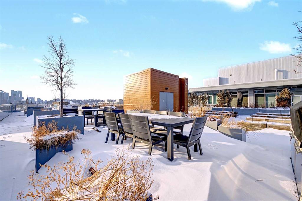 The amenities within the building act as an extension of the home, providing professional grade fitness spaces, spin and yoga studios, and a concierge service. The rooftop patio serves as a central gathering point with clear views of the downtown skyline. When it is time to commute, the Bridgeland/Memorial CTrain station is nearby, connecting you to the downtown core in minutes without the need for a car.