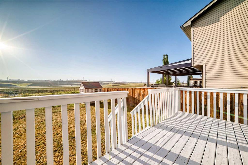 Welcome to this stunning two-storey home backing onto lush green space, offering exceptional privacy and breathtaking sunset views. The bright open-concept main floor features a spacious kitchen with a central island, walk-in pantry, and modern stove, flowing into a sunny dining nook and cozy great room with a gas fireplace and central A/C. Step out to a large west-facing deck and beautifully landscaped yard—perfect for indoor-outdoor living. A mudroom with laundry, 2-piece bath, and access to the double attached garage add everyday convenience. Upstairs offers a spacious bonus room, a serene primary suite with bay window, 3-piece ensuite, and walk-in closet, plus two additional bedrooms and a 4-piece bath. Recent updates include fresh paint, new washer, toilets, vanities, faucets, and countertops. Ideally located close to high-ranking schools, Costco, grocery stores, and with quick access to Stoney Trail, this exceptional home has it all. It’s a must-see—perfect for making lasting family memories. Don’t miss your opportunity to call this beautiful home yours!