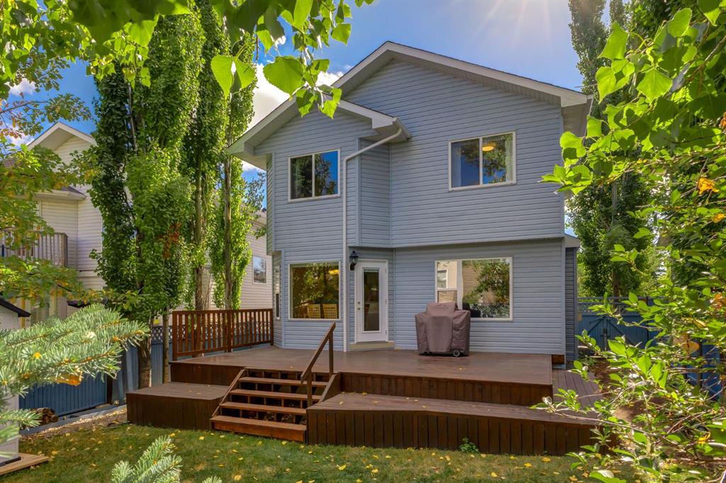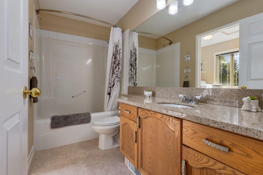 Ideally located on a quiet street and just steps from the beautiful, peaceful Wetlands Park this impeccable home showcases three bedrooms up, a serene, mature landscaped back yard, double attached garage, and is heavily upgraded including central A/C, a newer furnace, hot water tank, granite countertops throughout, beautiful hardwood flooring and more. You are greeted at your driveway with beautiful curb appeal with mature, towering trees flanking both sides of the home. As you enter the home you are met by your spacious front entryway with room for bench seating and rich, gorgeous hardwood floors. The entryway leads to your spacious open-concept main floor, which is flooded with natural light through multiple large windows. Not only does your living room feature a beautiful gas-fireplace, but it’s a center-wall fireplace (not a corner fireplace) with a tile surround and a classic mantle, giving a perfect place to watch the snow fall outside and to gather around for holidays. The spacious kitchen showcases tons of counterspace and storage, granite countertops, and a spacious pantry. The kitchen opens to your dining room, which boasts three large windows for a bright, cheerful dining experience with relaxing views of the mature landscaping in your backyard. From the dining room, step outside onto you spacious, freshly stained back deck with over 325sqft of space and overlooking the perfect backyard oasis of lawn and mature plants and trees – the perfect place to relax and unwind on warm summer days. The kitchen provides direct access to your double attached garage, and your main floor powder room. Upstairs showcases your large primary bedroom with room for king-sized furniture, comes complete with a walk-in closet, and a spacious 4-piece ensuite bathroom. Down the hall contains two large additional bedrooms, and the laundry room with extra storage space. The upstairs is completed with a 4-piece bathroom featuring a tile surround tub, and granite countertops. The fully finished basement includes an expansive family room, and a large storage room for tons of additional storage. Move in without the risk of multiple unforeseen expenses with central A/C, and a newer hot water tank and furnace. Perfectly situation on a peaceful, low traffic street, this home is just steps from playgrounds, parks, walking paths, Bridlewood Wetlands Park, and benefits from multiple schooling options within the community. Don’t miss out on the opportunity to own an immaculate front drive home in the perfect location of Bridlewood.