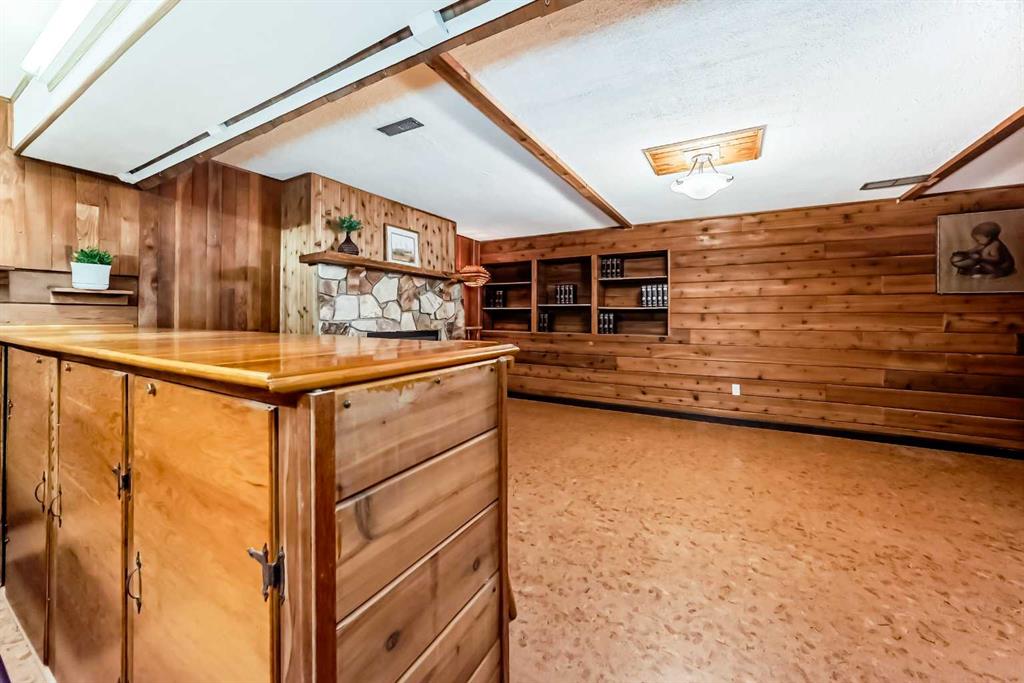LOCATION!! Welcome to Cedarbrae and this 3 bedroom, 1.5 bathroom bungalow home BACKING ONTO A LARGE GREEN SPACE on a VERY QUIET STREET. Upon entrance through the front door you are greeted with a substantial living room/dining room combo with a WOOD FIREPLACE. At the back of the house is the eat-in kitchen with EXTENDED CABINETRY and has been updated in the past. This is a great layout if a buyer wanted to open up the main floor space. The master suite has a 2 pc ensuite and there are 2 other bedrooms. Enjoy the SECURITY ROLL SHUTTERS on the NEWER WINDOWS. The lower level has a VERY LARGE FAMILY ROOM with a GAS FIREPLACE and PUB BAR. The exterior boasts a LARGE SHED in the SPACIOUS BACKYARD HAVEN which is backing onto the green space. Pull up to the side of the home on a POURED CONCRETE DRIVEWAY giving access to both the front and back doors. City Planning confirms verbally that a gar