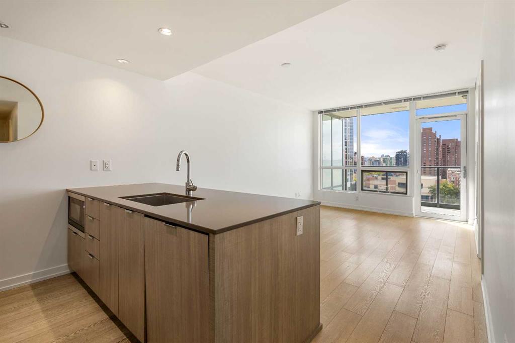 Luxury living in downtown Calgary! One of the Best Locations in the city! This modern one bedroom apartment in the Outlook at Waterfront, on the 12th floor and facing West! With great views of the city, Bow River and Rocky Mountains! Only steps away from the extremely popular Prince Island Park, and the future Green Line C-train Station. Great restaurants and coffee shops nearby! Building is full of amenities, such as Meeting Rooms, Party Room, Gym, Bike storage, Lockers, and a beautiful Court Yard! Friendly full-time concierge staff always ready to help. Perfect for someone looking for stress free downtown living, or a great investment!