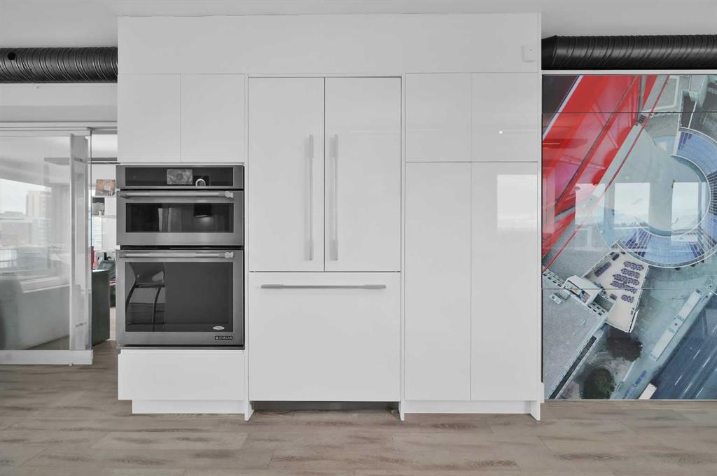 The opposite wing is currently configured for business use with multiple office/flex rooms, 3 piece bathroom , second kitchen, dining area with with walkout access to an additional outdoor patio, and a living/lounge space, with walkout access to a balcony with more city views. The office spaces offer excellent versatility and can easily be converted into bedrooms to suit your needs.
