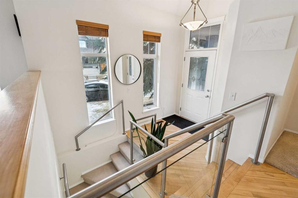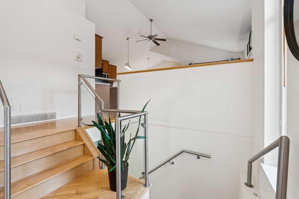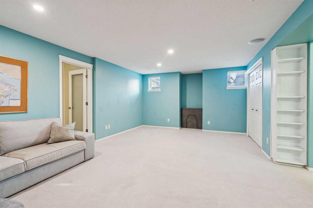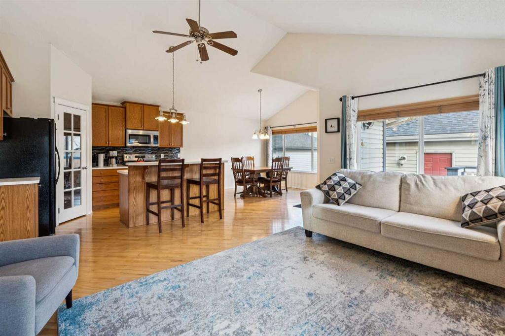 This wonderful Bungalow is a perfect family home situated on a corner cul-de-sac location. Welcome home. This beautiful bungalow offers many features- super bright home with vaulted ceilings, hardwood floors, open concept living space, stainless steel and glass railings, and a bright kitchen with a centre island. The living room features a gas fireplace with a tile surround and mantle-style finish. The large primary bedroom also has a walk-in closet with a laundry chute and glass sliding doors that lead to a front balcony. The basement is finished with a large family room, a corner gas fireplace, two more spacious rooms (one of the rooms is being used as an office), a laundry room, a storage room, and another 4 pce bath. The home is a non-smoking, no pet home. The home is close to all amenities, schools, restaurants, shopping, Stoney Trail.