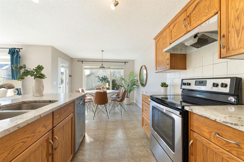 Welcome home to this inviting two-storey family home perfectly situated steps from scenic pathways and outdoor adventures, ideal for kids, biking, morning runs, and weekend walks. The main level offers a bright, open layout designed for everyday living. The functional kitchen features a large island, a corner pantry, and plenty of workspace, all opening to a comfortable family room featuring a gas fireplace, perfect for cozy nights in. You’ll also find ample dining space and a flex room that’s perfect for a home office or play zone. A mudroom, main-level laundry, and a half bath for guests complete this thoughtfully designed floor. Upstairs, you’ll find three spacious bedrooms, a 4-piece main bath, and a large bonus room for movie nights or game days. The primary bedroom includes a roomy 4-piece ensuite. The finished basement adds even more versatility with two additional bedrooms, another 4-piece bath, and a large flex space ready for a gym, rec room, or home theatre. Set on a south-facing corner lot with no sidewalk, this property offers ample sun exposure and parking for guests when celebrating birthdays or hosting Christmas gatherings. Fresh, clean, and move-in ready — this home offers comfort today and the opportunity to refresh and make it your own tomorrow.