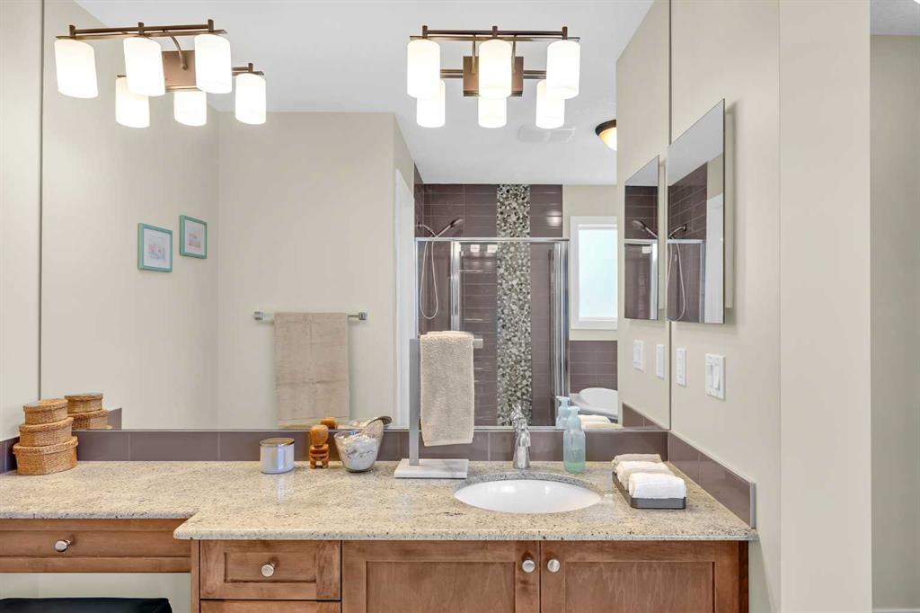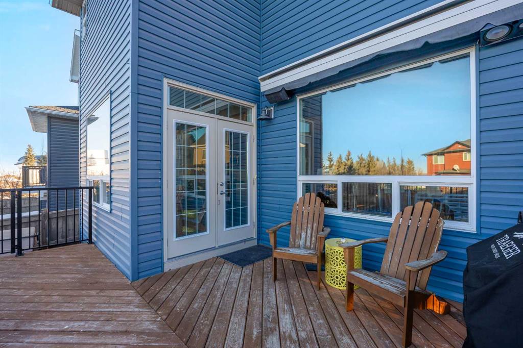 Offering a total living area of 3,396 sq. ft., the main floor showcases a bright, open-concept layout with 9’ ceilings, maple hardwood flooring, granite countertops in the kitchen and bathrooms, a cozy fireplace feature, central air conditioning, and built-in speakers. The kitchen is designed for both everyday living and entertaining, featuring a large centre island with breakfast bar, stainless steel appliances, and a convenient walk-through pantry.