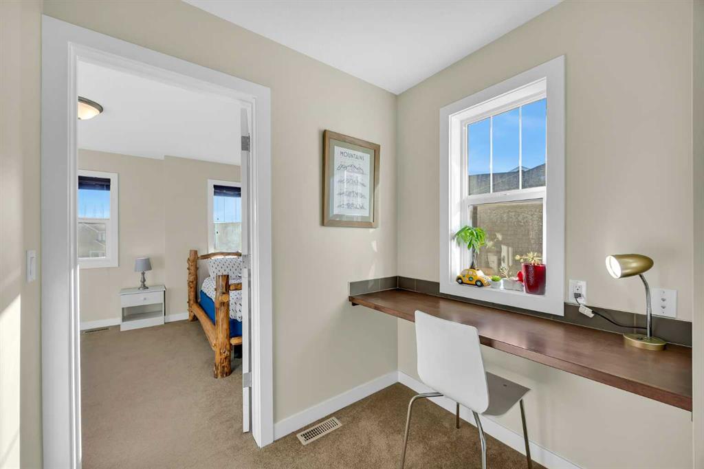 Upstairs, you’ll find three generously sized bedrooms, each with a walk-in closet, along with a versatile bonus room. The primary retreat offers northwest exposure and tranquil views overlooking the gardens and open prairies.