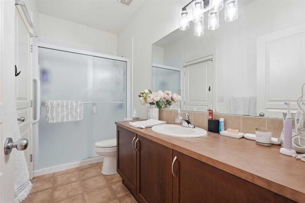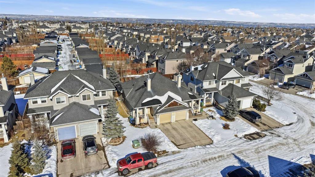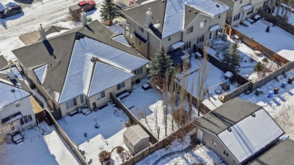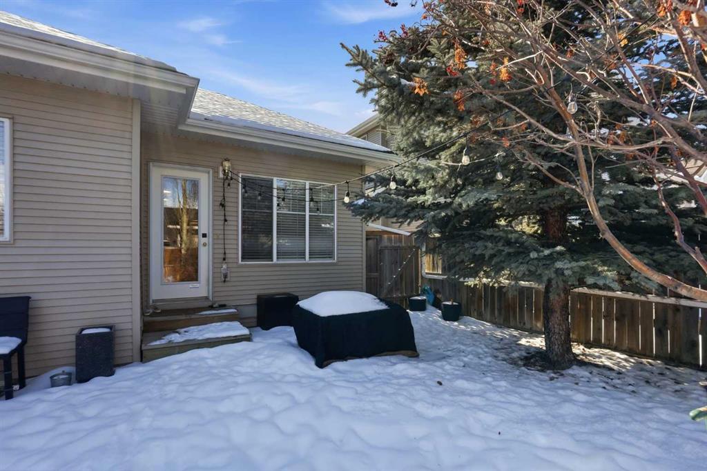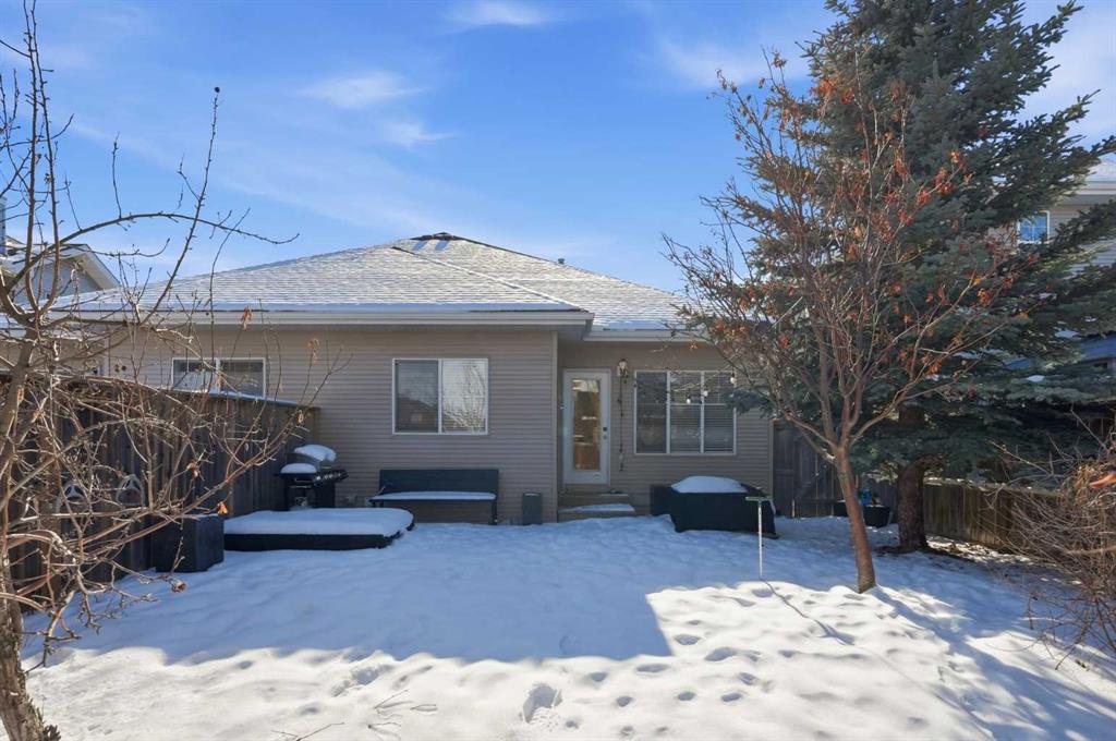 OPEN HOUSE SUNDAY, MARCH 8TH FROM 11 AM - 1 PM. Located in the desirable community of Cougar Ridge, this charming villa bungalow offers nearly 1,900 sq ft of beautifully developed living space and an ideal low maintenance lifestyle. The open main level features hardwood floors, high ceilings, and a welcoming living room anchored by a corner fireplace. The updated kitchen includes an island with eating bar, generous cabinetry, and a bright, casual dining area—perfect for everyday living. At the front of the home, the spacious foyer doubles as a comfortable den or home office, offering a quiet place to work. The main level also hosts the primary bedroom with ample closet space and direct access to a 3 piece bath. The fully developed lower level is designed for relaxation and entertaining, featuring a huge recreation/family room complete with a projector, large screen, speakers, and a wet bar—an ideal setup for movie nights or game day. Two additional bedrooms and a 4 piece bath provide excellent space for guests or hobbies. Additional highlights include central air conditioning, a large private backyard with patio, and the convenience of a single attached garage. This prime location offers quick access to COP, Paskapoo Slopes walking and biking trails, Cougarstone Park, plus nearby schools, shopping, and public transit, with effortless connectivity to Old Banff Coach Road and Stoney Trail.