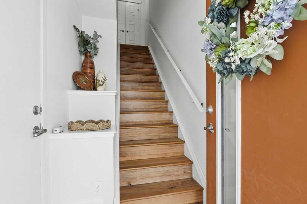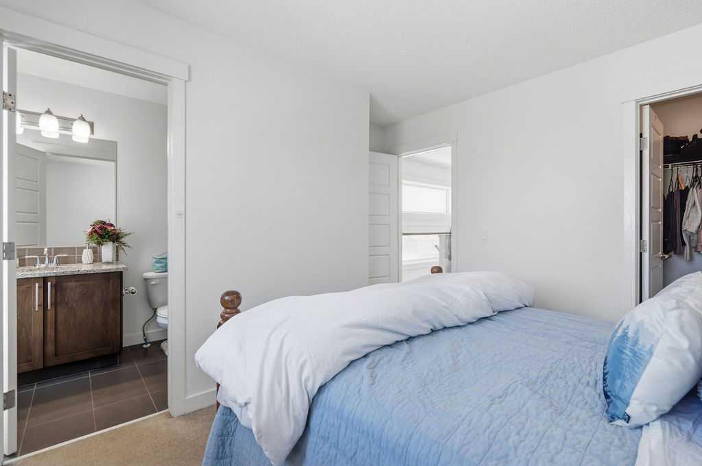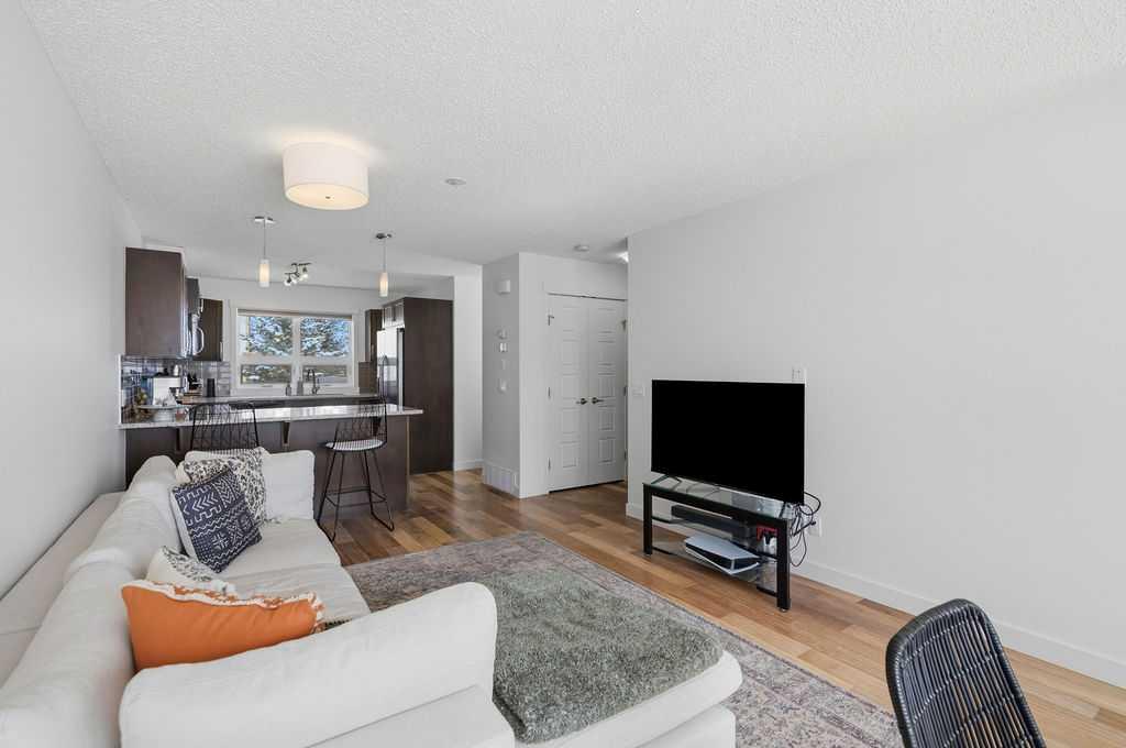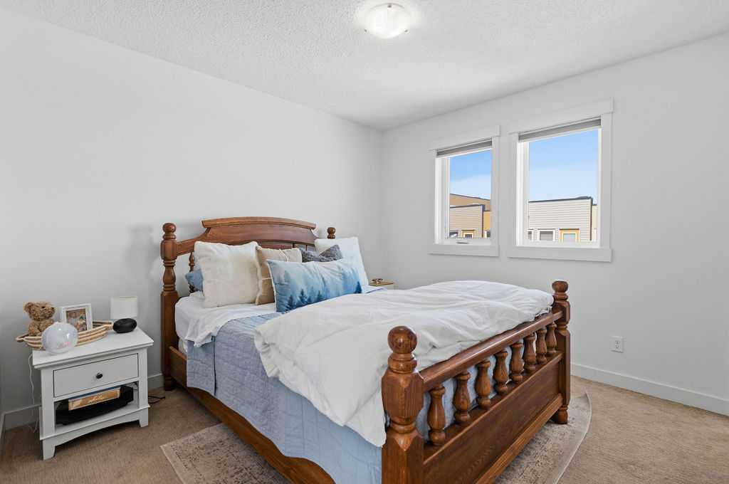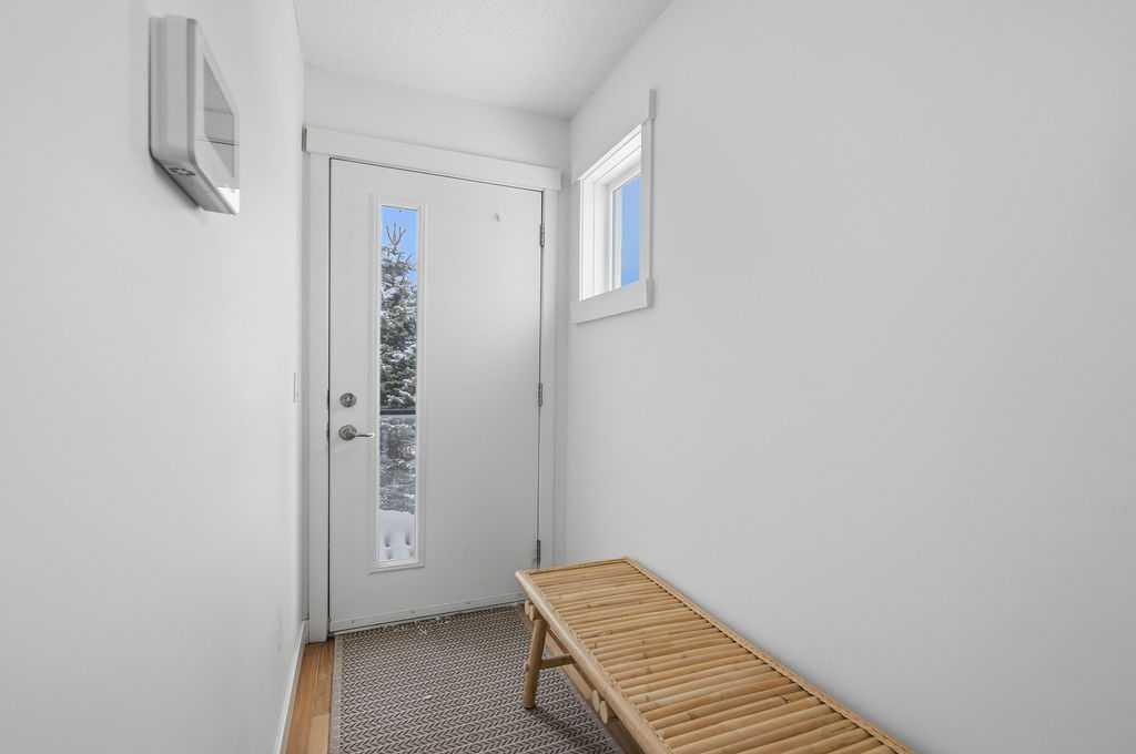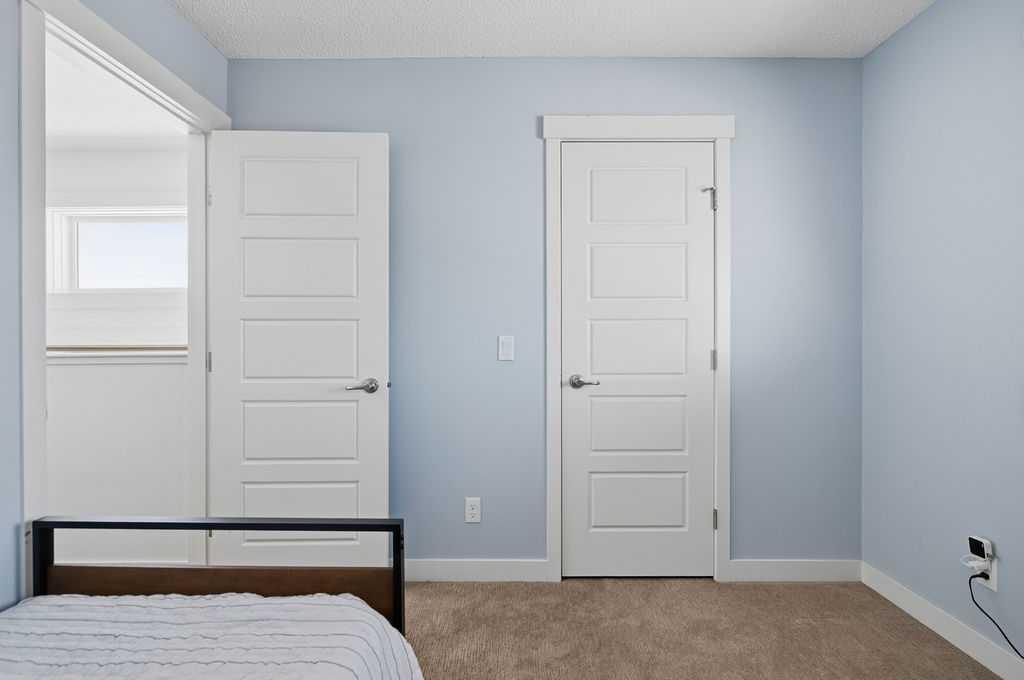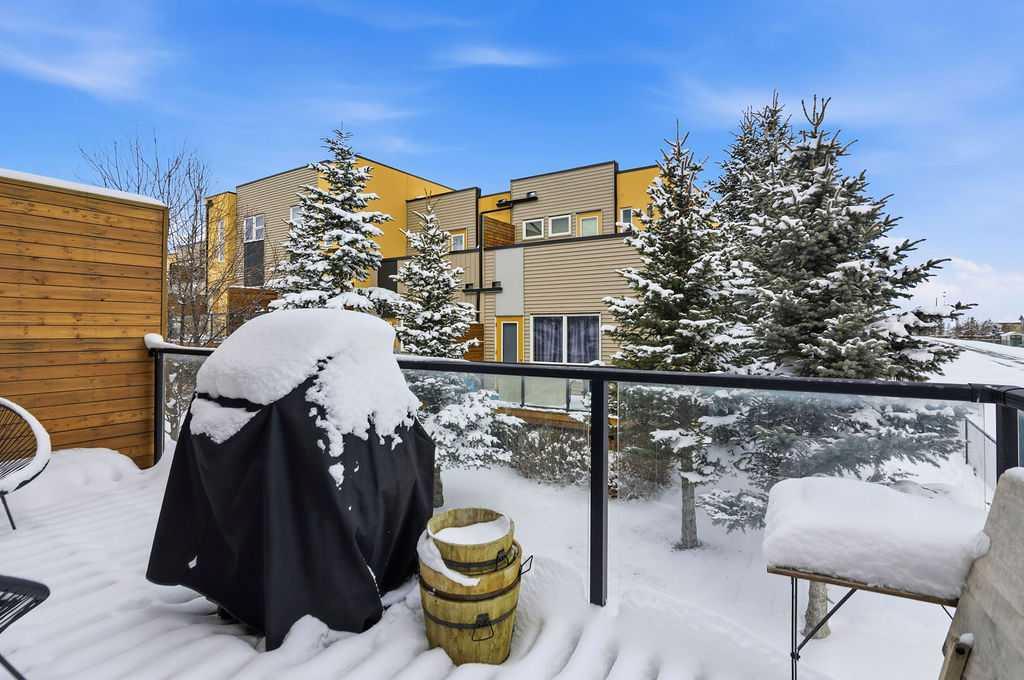 Welcome to this beautifully custom-designed end-unit townhouse in the highly sought-after community of Coventry Hills. Meticulously maintained and in immaculate condition, this home offers both style and functionality throughout. The main floor features a bright, open-concept layout highlighted by sleek engineered hardwood flooring and expansive modern windows that flood the space with natural light. The chef-inspired kitchen is equipped with high-end stainless steel appliances, granite countertops, rich maple cabinetry, and a spacious island with ample storage and convenient bar seating—perfect for entertaining. Step outside to your private deck, complete with a natural gas hook-up, glass railing, and serene views of open green space—ideal for summer evenings. Upstairs, you’ll find a spacious primary bedroom with a walk-in closet and a 4-piece ensuite, along with a generously sized second bedroom, an additional 4-piece bathroom, and a conveniently located front-loading washer and dryer. The oversized attached garage is fully finished and insulated, featuring a cleverly hidden storage room for added practicality. Ideally located close to shopping, restaurants, schools, and offering quick access to Deerfoot Trail and Stoney Trail. This is a must-see home you don’t want to miss!