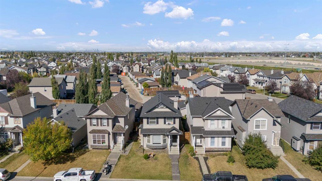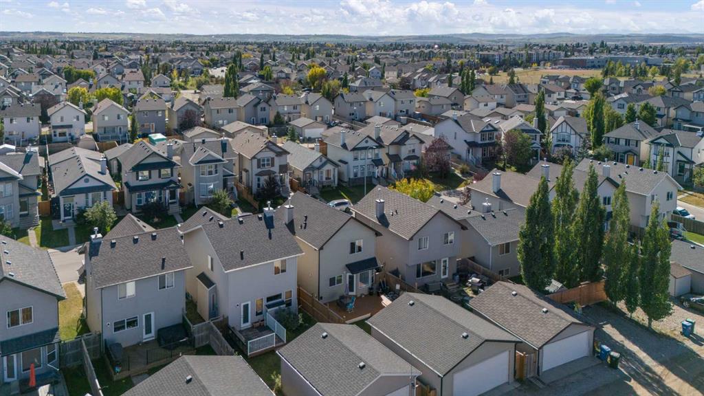 3 BEDROOMS | 2 1/2 BATHROOMS | 2 STOREY | 1,335 SQFT OF LIVING SPACE | OVERSIZED HEATED DETACHED GARAGE | Welcome to 199 Cranberry Close SE, nestled in the family-friendly community of Cranston! This charming 2-storey home offers 1,335 sqft of thoughtfully designed living space along with a rare oversized, heated detached double garage featuring 9’6” ceilings, a sub-panel with 220v, and ample room for vehicles, hobbies, and storage. Step inside and you’ll be greeted by warm hardwood floors and a cozy living room with built-in shelving and a gas fireplace, perfect for relaxing evenings at home. The bright, open kitchen overlooks the backyard and boasts a functional layout with a pantry, plenty of cabinetry, and an adjoining dining area with tile flooring and access to the deck. Convenient main floor laundry and a half bath complete this level. Upstairs, the spacious primary suite comfortably fits a king-sized bed and includes a walk-in closet plus a private 3-piece ensuite. Two additional bedrooms and a full 4-piece bathroom provide space for family, guests, or a home office. The unfinished basement is fully insulated, offering an excellent opportunity to add equity and tailor the space to your needs, whether that’s a gym, media room, or play area. Outside, enjoy a sunny backyard with a large deck, and BBQ patio space and alley access to your oversized garage. Located in a sought-after neighbourhood with nearby schools, parks, playgrounds, and shopping, this property delivers both value and lifestyle. The community of Cranston also includes a skatepark, splash park and hall for private events. Don’t miss out on one of the best opportunities in Cranston!
