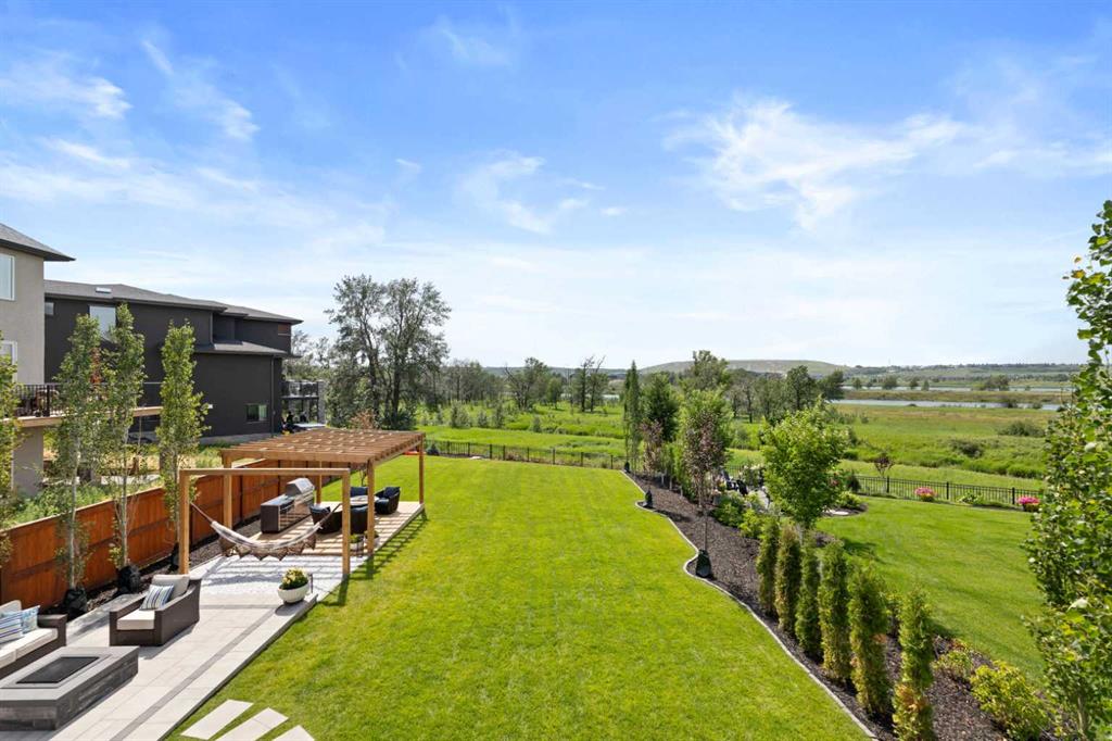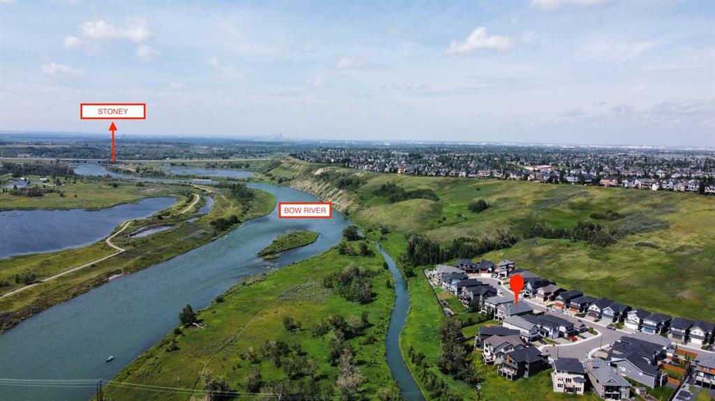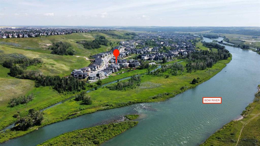 Welcome to one of Calgary’s finest offerings—where timeless design meets natural beauty in the prestigious enclave of CranstonRiverstone. This 2022-built luxury walkout bungalow is more than a home—it’s a rare riverfront sanctuary, backing directly onto the Bow River anduntouched natural reserve, offering uninterrupted views and total privacy with no rear neighbours. Designed for the discerning homeowner, thisexquisite 3-bedroom, 2.5-bathroom estate offers 1757 SQFT on the main level and over 3000 SQFT of total developed living space. From the momentyou enter, you’ll be captivated by the flood of natural light, soaring ceilings, and seamless flow of the open-concept layout. The luxury kitchen is achef’s dream—featuring premium custom cabinetry, high-end appliances, and an abundance of space for both functionality and style. The great roomoffers expansive river views and opens onto your private upper deck—perfect for morning coffee or evening wine. Retreat to your serene primarysuite, complete with a spa-like ensuite and custom walk-in closet. Downstairs, the fully developed walkout basement extends your lifestyle with spacefor an entertainment zone, home gym, or private retreat. Outside, nature becomes your neighbour. Walk the endless trails of Cranston’s preservedriver valley, or simply enjoy the peaceful stillness from your backyard. The oversized triple-car heated garage, central A/C, and high-efficiencyfurnace complete the package for true year-round comfort and peace of mind.