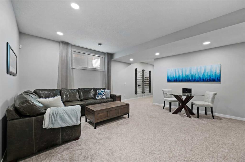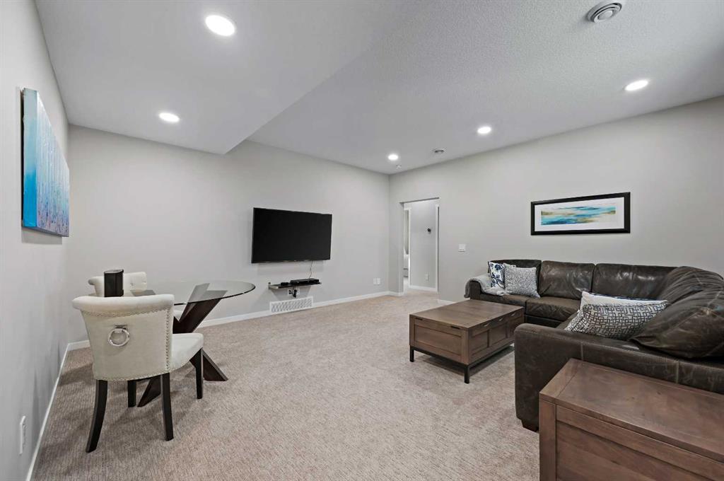 Experience refined living in this luxurious semi-detached villa bungalow, perfectly situated in the prestigious community of Riverstone — just steps from the tranquil Bow River and scenic walking and running paths. From the moment you step inside, you’ll be captivated by the home’s 10-foot ceilings, open-concept design, and abundant natural light that create an atmosphere of effortless elegance. The chef-inspired kitchen is a true showpiece, featuring stainless steel appliances, granite countertops, and an oversized island ideal for both culinary creativity and stylish entertaining. The living room exudes sophistication with its gas fireplace as the focal point and double patio doors leading to a private backyard oasis. The primary suite is a serene retreat complete with a spa-like ensuite featuring a dual vanity, heated floors, water closet, and a beautifully appointed California walk-in closet. Conveniently located off the mudroom/laundry area, a two-piece powder room and double attached garage provide both practicality and ease. Lower level offers exceptional versatility with 2 spacious bedrooms, a full bathroom, and an expansive recreation area perfect for entertaining or relaxing. A dedicated gym, home office, or den adds even more flexibility to suit your lifestyle. Every closet throughout the home is generously sized, offering abundant storage and thoughtful design at every turn. Additional highlights include central air conditioning, professional landscaping, Gemstone exterior lighting, fully finished drywalled garage, underground irrigation, and upgraded dishwasher, washer and dryer. Discover the perfect harmony of comfort, style, and quality craftsmanship in this remarkable Riverstone residence — a home that truly exceeds expectations!