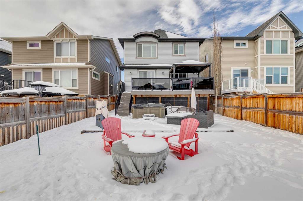 Located in the sought after community of Cranston! First time offered for sale, this 3-bedroom home offers over 2,100 sq ft of finished living space and is perfect for any family. The open floor plan of the main level provides for a perfect main living area. The kitchen, overlooking the dining and living room is complete with stainless steel appliances including gas cooktop, granite counter tops, oversized island with breakfast bar & bakers counter, walk-in pantry, and ceiling height cabinets. The living room overlooks the back yard and has a cozy corner gas fireplace. Also on this level is a 2-pc washroom & mudroom off the garage. The upper level offers 3 nice sized bedrooms, a 4-pc bathroom and laundry room. The large family room has vaulted ceilings and large windows making it nice and bright. The primary suite offers a large walk-in closet and a 5-pc ensuite that includes a soaker tub and walk-in shower. The basement is untouched and provides the perfect opportunity to add additional living spaces. Recessed lighting, hardwood floors, and vinyl window shutters are found throughout this well-maintained home. The landscaping is low maintenance with artificial turf in the backyard and rock in the front. The SE facing backyard is perfect for entertaining with a large dura deck off the kitchen that leads to a lower deck with hot tub and plenty of space for lounging and grilling. Walking distance to the amenities of Cranston Corner & Cranston Market. Perfectly situated steps to the Cranston Escarpment View Point & trails. Close to schools & the Calgary Health South Campus. Commuting is easy with quick access to Stoney Trail, Deerfoot Tr & MacLeod Tr.