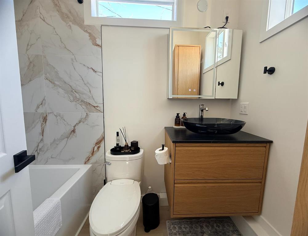 Welcome to your inner-city home in the sought-after community of Crescent Heights NW. Located in a semi-gated setting, this beautifully renovated property offers a unique open-concept layout with modern finishes and exceptional outdoor living space. This home offers 1038 sqft total developed living space. The stylish kitchen features crisp white cabinetry, quartz countertops, a striking oversized dark sink, stainless steel appliances, a chimney-style hood fan, and a coordinating backsplash. The adjacent dining area is filled with natural light from large windows overlooking the deck and the treed backyard. Step outside to enjoy your private outdoor retreat, complete with a Mirador adjustable louvered aluminum pergola, designed for both comfort and style. Its patented adjustable louvers and integrated gutter system provide shade and protection from the rain—perfect for relaxing or entertaining. This home underwent a complete renovation inside and out just two years ago, including a new roof, new windows, redesigned interior layout, new flooring, a fully updated kitchen with new appliances and sink, renovated bathrooms including a new primary ensuite, a new deck, fresh exterior paint, and newly landscaped front and back yards. The home also features 200 AMP electrical service, providing excellent capacity for modern living. In 2025, a brand-new heated double garage was added, finished with durable Hardie board siding and equipped with an EV charger plug already installed. Adjacent to the garage is a newly built flex room, complete with a Murphy bed, closet space, and a full 4-piece bathroom—ideal for guests, a home office, studio, or private retreat. The partially finished basement offers excellent storage and future development potential, ready for your creative ideas. Situated on a property with MC-1 zoning, this home also presents exciting future redevelopment potential. Enjoy an unbeatable location just steps from 16 Avenue and the prestigious Crescent Road with stunning downtown skyline views, and within walking distance to downtown, SAIT, public transit (future Green Line C-Train), grocery stores, parks, and restaurants. Families will appreciate being within the catchment of the highly regarded Rosedale Elementary School and Crescent Heights High School. A rare opportunity to own a beautifully renovated home in one of Calgary’s most desirable inner-city communities. Book a showing today before it's GONE.