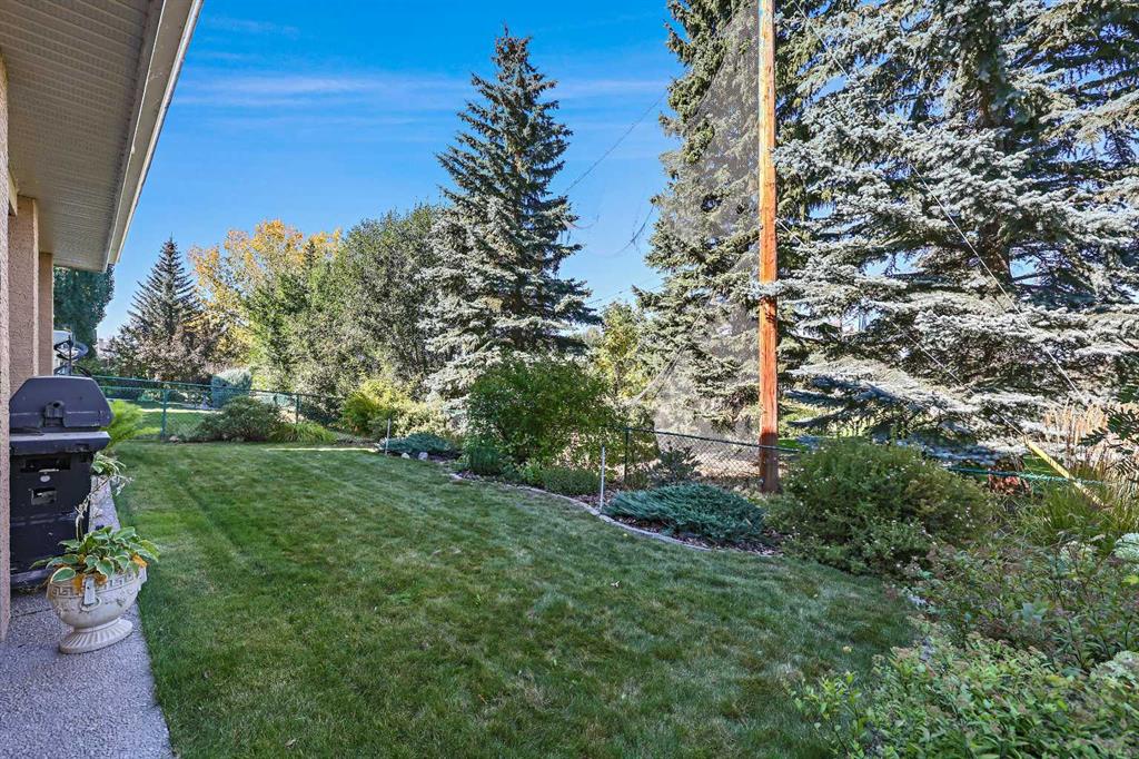 Step outside to your very own private oasis with an upper BBQ deck, lower concrete patio, large grassy area, and mature landscaping with trees offering beauty and privacy. The north-facing backyard is designed for relaxation and entertaining.