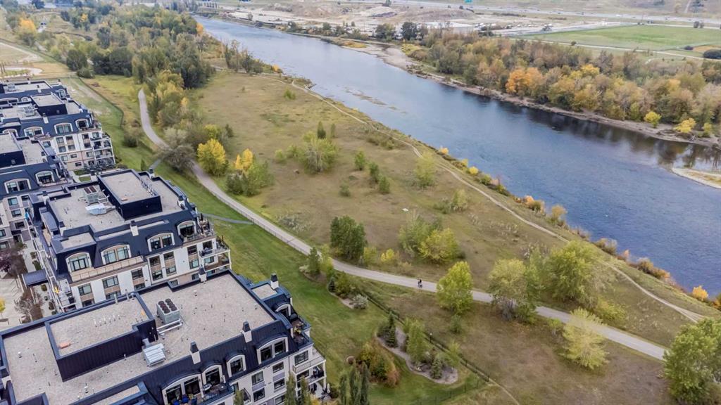 For some, luxury is an occasional indulgence. For others, it is a way of life. If every day luxury & refined living are what you desire, look no further than this outstanding CORNER suite at Champagne in Quarry Park. Offering 1631 SF of impeccably curated living space, with 9-foot ceilings that are flooded with natural light & serene tree top views. Every detail has been thoughtfully considered & the spacious floor plan is sure to delight. A gracious front entrance welcomes you into the suite, & offers a walk-in closet and custom built in cabinetry for your storage needs. The spacious living area with hardwood flooring throughout is sure to delight - a cozy fireplace surrounded by built-ins anchors the living room, sunny & bright dining area with windows on 2 sides is ready to host your family gatherings and provides patio door access to the east facing balcony. The show-stopping kitchen is a chefs dream – expansive island & granite counters, full tile backsplash, luxurious stainless steel appliances including a gas stove & new LG fridge with water/ice dispenser, and an abundance of cabinets providing ample storage including wire pull out racks – so convenient! The serene primary retreat is generously proportioned & offers space for a king-sized bedroom suite & sitting area, while the 5 piece ensuite bath delivers a spa-like experience worthy of a luxury hotel – featuring a relaxing soaking tub, separate shower, granite counters & dual sinks. The walk in closet features a new custom closet system. Second bedroom, equally well-appointed, provides dual aspect windows with beautiful river views & a 3 piece ensuite bath. Additional features include central air conditioning, coffered ceilings, estate millwork, solid core doors, new LG wash/dryer tower with steam function, new composite decking installed on the balcony, new carpet in both bedrooms, Hunter Douglas blinds throughout (black out blinds in the bedrooms), custom drapery in this non-smoking, pet-free home. TWO titled, side by side underground parking stalls are included, located very close to the elevator, a rare & valuable convenience. Also included is a titled storage locker on the same level as the parking spots. You’ll appreciate the peace of mind that comes with Champagne’s reputation for exceptional maintenance & inherently quiet concrete construction. Additional building features include 2 car wash bays, bicycle storage, plenty of visitor parking & a peaceful courtyard. Plus it’s pet friending – 2 dogs or cats or combo of both, with board approval. The location can’t be beat! Walk to Carburn Park, The Market at Quarry Park offers great amenities including Starbucks, The Park and Original Joe’s restaurants & Co-Op grocery, the Remington YMCA is just around the corner and of course the extensive river pathway system is just outside your door. Easy access to major traffic routes and numerous SE Calgary amenities. This unit shows like new and must be viewed in person to be fully appreciated!