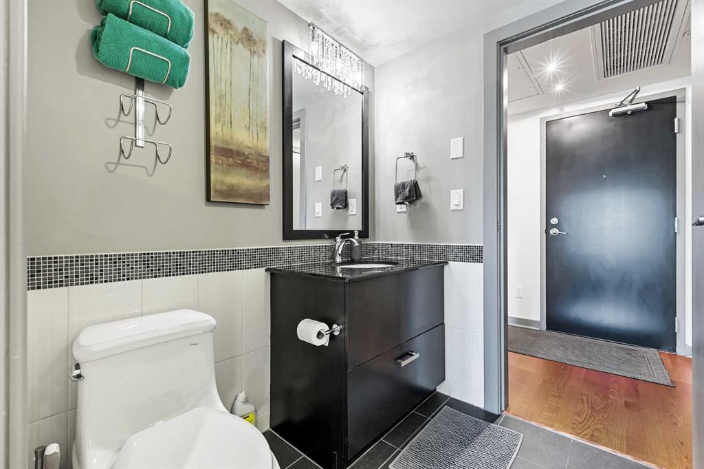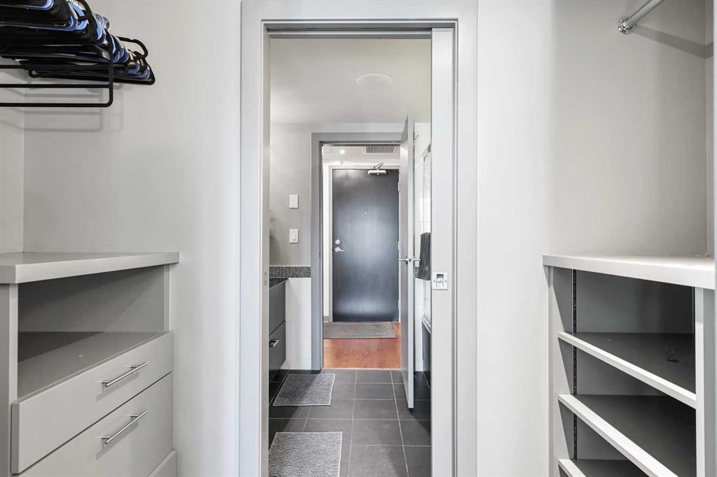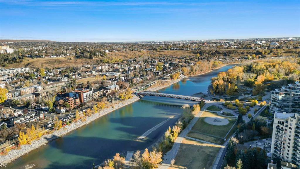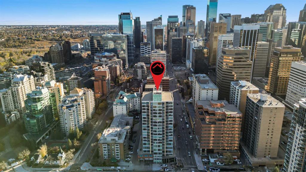 Welcome to Solaire, one of downtown Calgary’s most sought-after high-rises, offering refined urban living in the heart of the West End. This stylish 1-bedroom, 1-bathroom residence on the 17th floor captures sweeping city views through expansive floor-to-ceiling windows and features a spacious open-concept layout designed for modern living. The contemporary kitchen impresses with full-height espresso cabinetry, under-cabinet lighting, sleek granite countertops, a built-in pantry, a generous island with breakfast bar, and premium stainless steel appliances. The bright and inviting living area is anchored by a modern gas fireplace and provides ample space for dining beneath an elegant chandelier. The bedroom is a serene retreat, enhanced by upgraded carpeting, French doors, and matching wall-mounted chandeliers. The well-appointed bathroom showcases extended tile detailing, and a granite vanity. Additional highlights include engineered hardwood flooring, built-in closet organizers, central air conditioning, and an integrated in-ceiling audio system. This residence comes complete with a titled underground parking stall and an assigned storage locker. Solaire offers professional management, full-time concierge service and a fully equipped fitness centre. Perfectly positioned just steps from the Bow River pathways, Eau Claire Park, the LRT station, and a short stroll to Kensington, this exceptional home is ideal for first-time buyers or investors seeking a blend of luxury, style, and convenience. Contact your favourite Realtor to arrange a private viewing today.