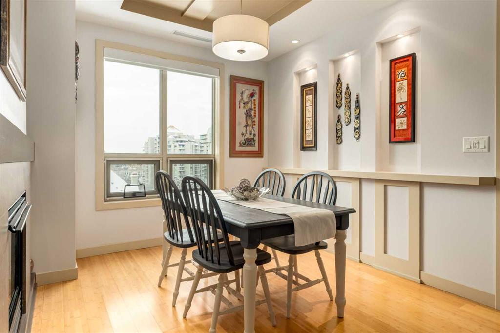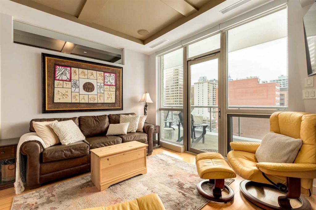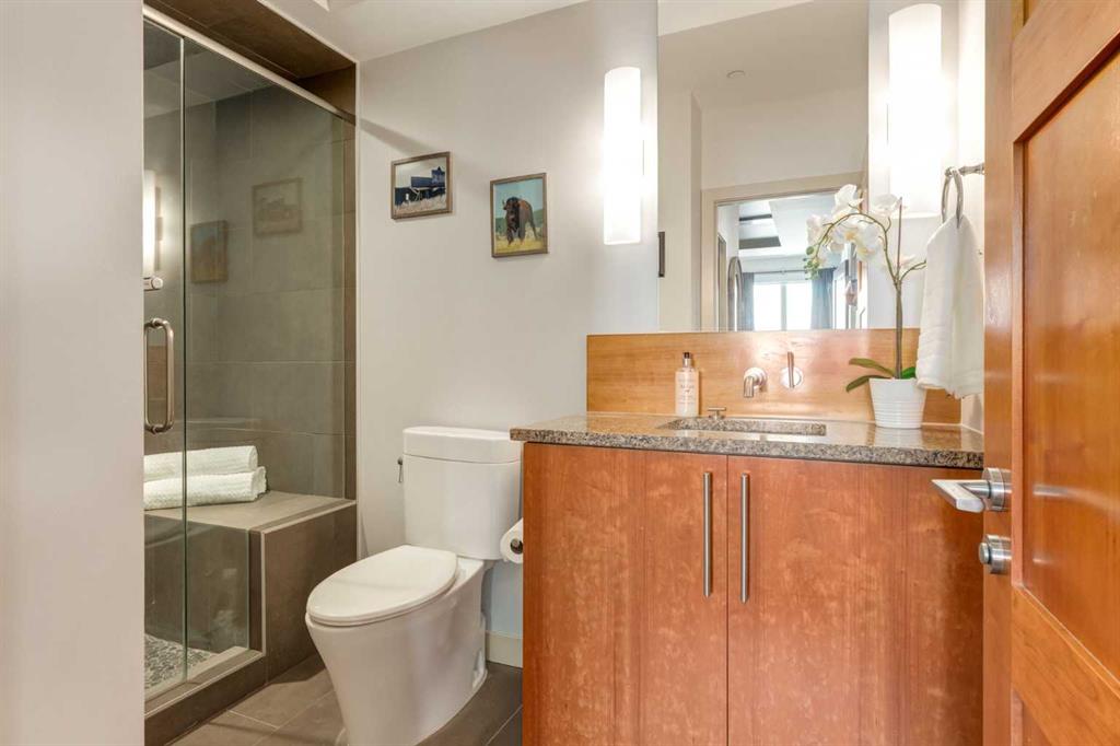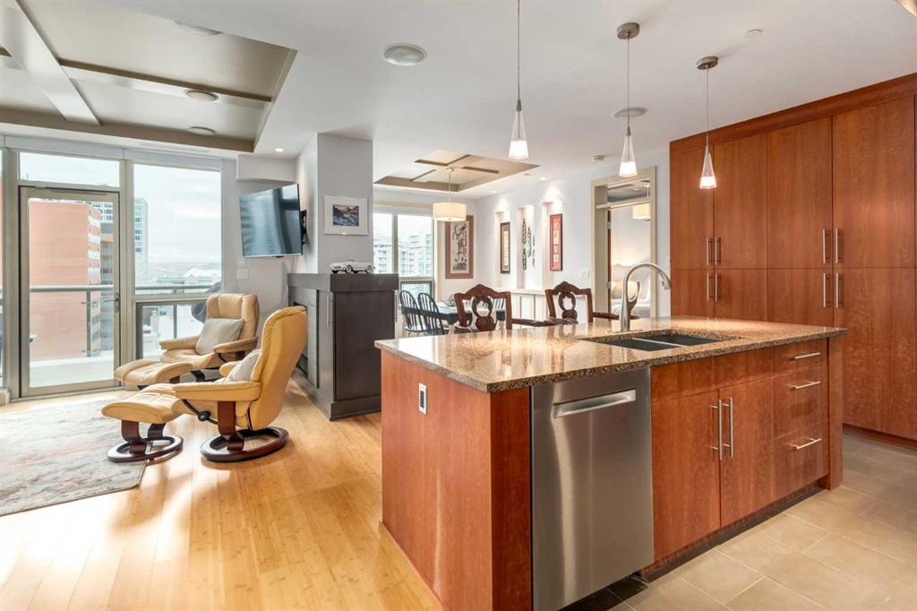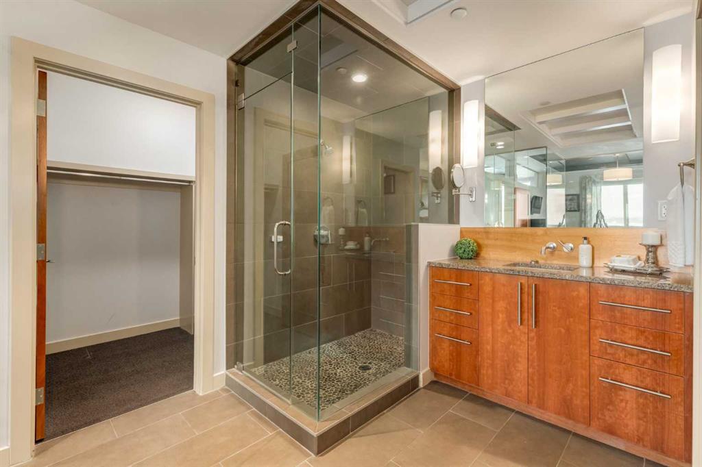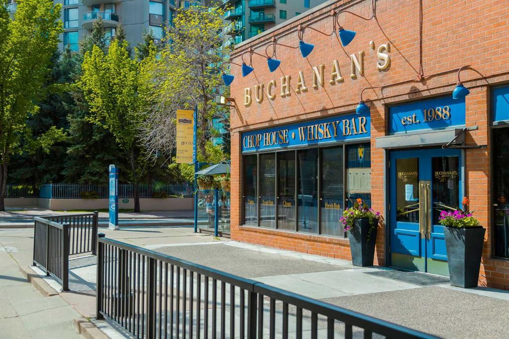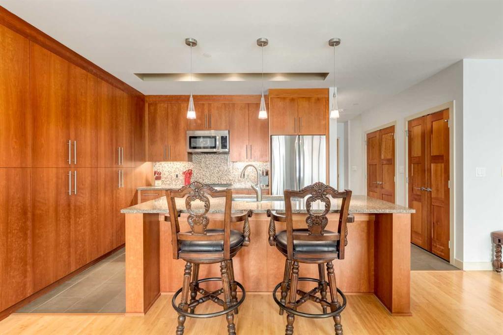 Welcome to Churchill Estates - a timeless brick and sandstone building home to just 40 luxury-class residences, conveniently located in the highly sought-after Eau Claire area of Downtown Calgary. Situated just steps from some of the city’s finest restaurants, a short stroll to the Bow River, pathways, Prince’s Island park, downtown core, and surrounded by upscale amenities to suit all lifestyles; this incredible location is sure to impress. This prime, WEST facing suite with massive wrap-around balcony offers nearly 1350 SF, 9 ‘ ceilings, a desirable 2 primary bedroom floor plan (both with ensuites and walk in closets), home office with custom built-ins and TWO titled parking stalls. You’ll fall in love with the luxury features throughout - a contemporary chef’s kitchen complete with high-end appliances including gas range, granite counters, large central island with breakfast ledge & plenty of built-in storage including pantry. The kitchen overlooks the spacious dining room and living room, with cozy double sided gas fireplace separating the rooms, and floor to ceiling windows and patio door to the huge west facing balcony with gas bbq line. Enter the primary retreat that easily accommodates king-sized furniture, to find a breathtaking spa-like ensuite with heated floors, large steam shower, relaxing soaker tub, dual sinks and spacious walk-in closet. The secondary bedroom at the opposite end of the suite is a haven thanks to a 3 pc ensuite with it's own walk in closet. Enoy the comfort of central A/C and dual zone climate control, bamboo flooring & tile in the main living areas, solid core doors throughout, 2 pc powder room off the entrance, laundry room, extra titled storage locker and 2 spacious side by side titled parking stalls. This sophisticated, secure and well-managed and impeccably maintained building is pet friendly, and offers a car wash bay, secure bike storage, visitor parking and of course, a friendly greeting from the on-site concierge. The solid concrete construction adds to the building’s quiet atmosphere. Condo fees include all utilities INCLUDING unit electricity. Perfect for the discerning buyer that wants luxury living and an option for a true lock and go lifestyle. Be sure to check out the multi-media tour, and book your viewing today!