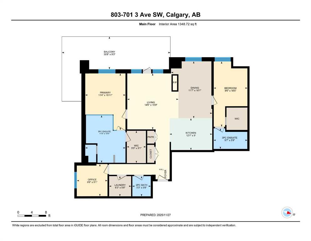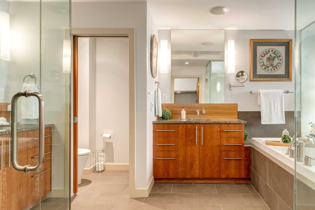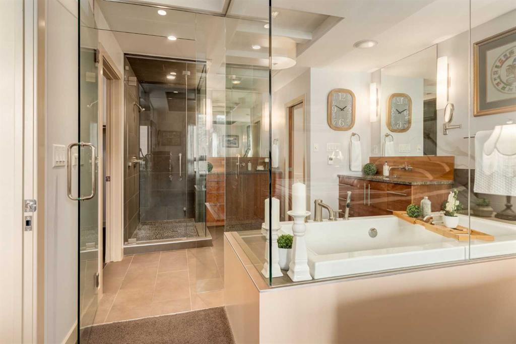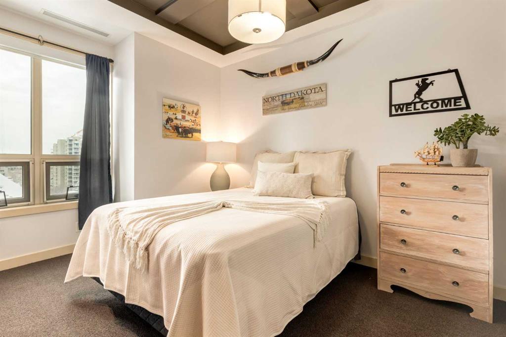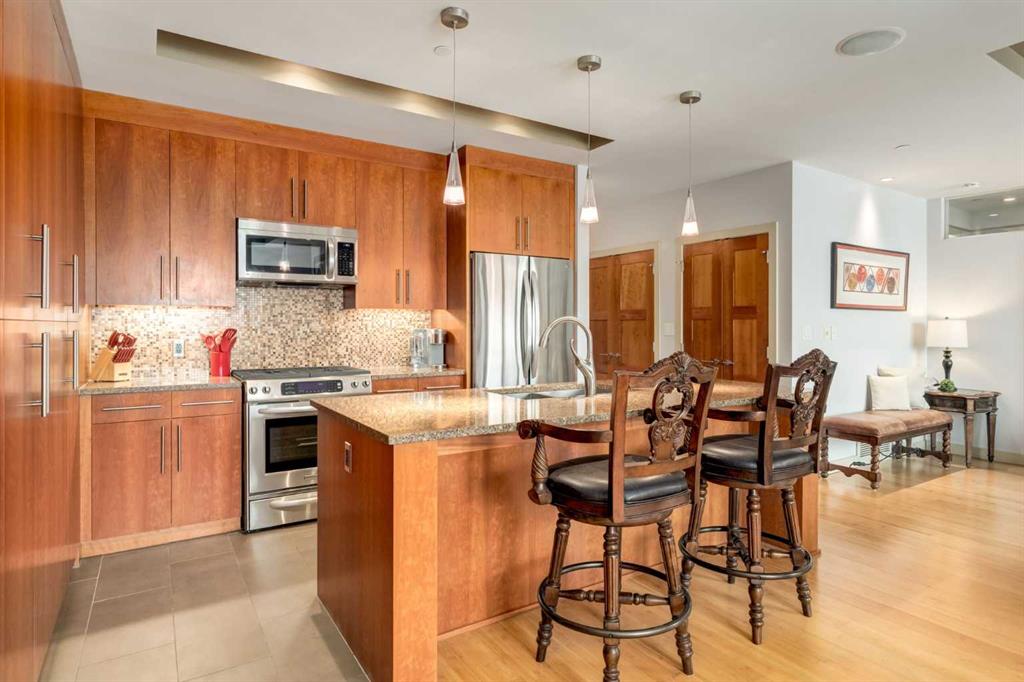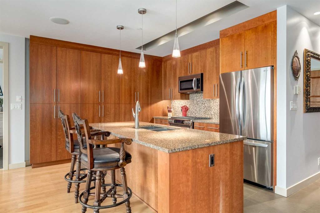 Welcome to Churchill Estates - a timeless brick and sandstone building home to just 40 luxury-class residences, conveniently located in the highly sought-after Eau Claire area of Downtown Calgary. Situated just steps from some of the city’s finest restaurants, a short stroll to the Bow River, pathways, Prince’s Island park, downtown core, and surrounded by upscale amenities to suit all lifestyles; this incredible location is sure to impress. This prime, WEST facing suite with massive wrap-around balcony offers nearly 1350 SF, 9 ‘ ceilings, a desirable 2 primary bedroom floor plan (both with ensuites and walk in closets), home office with custom built-ins and TWO titled parking stalls. You’ll fall in love with the luxury features throughout - a contemporary chef’s kitchen complete with high-end appliances including gas range, granite counters, large central island with breakfast ledge & plenty of built-in storage including pantry. The kitchen overlooks the spacious dining room and living room, with cozy double sided gas fireplace separating the rooms, and floor to ceiling windows and patio door to the huge west facing balcony with gas bbq line. Enter the primary retreat that easily accommodates king-sized furniture, to find a breathtaking spa-like ensuite with heated floors, large steam shower, relaxing soaker tub, dual sinks and spacious walk-in closet. The secondary bedroom at the opposite end of the suite is a haven thanks to a 3 pc ensuite with it's own walk in closet. Enoy the comfort of central A/C and dual zone climate control, bamboo flooring & tile in the main living areas, solid core doors throughout, 2 pc powder room off the entrance, laundry room, extra titled storage locker and 2 spacious side by side titled parking stalls. This sophisticated, secure and well-managed and impeccably maintained building is pet friendly, and offers a car wash bay, secure bike storage, visitor parking and of course, a friendly greeting from the on-site concierge. The solid concrete construction adds to the building’s quiet atmosphere. Condo fees include all utilities INCLUDING unit electricity. Perfect for the discerning buyer that wants luxury living and an option for a true lock and go lifestyle. Be sure to check out the multi-media tour, and book your viewing today!