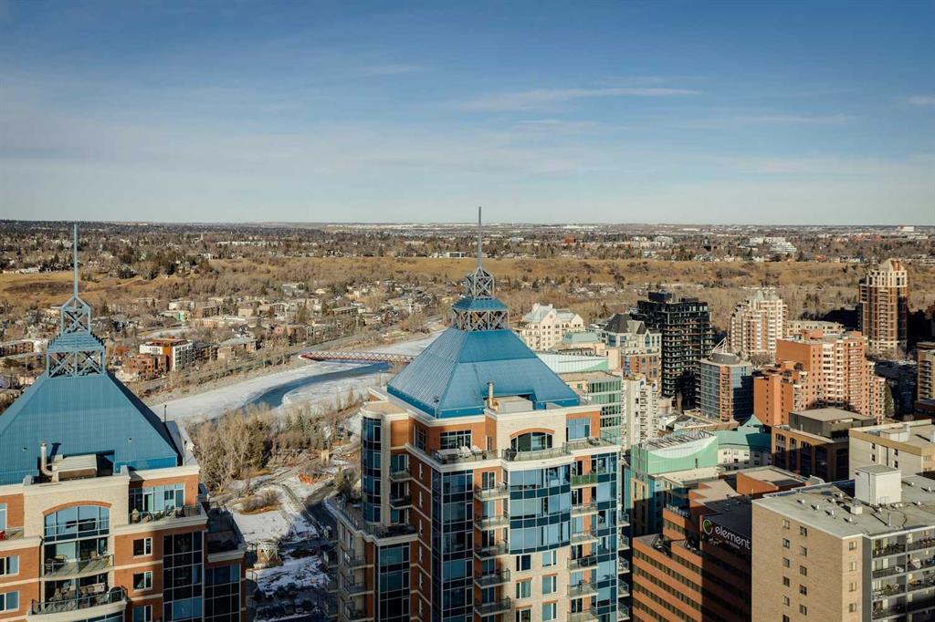 PRICE IMPROVEMENT! Experience elevated penthouse living at The Vogue, perched high above the city’s financial core. This rare 2 bedroom, 2 bathroom residence features soaring vaulted ceilings, floor-to-ceiling windows, and TWO well-placed balconies that capture sweeping urban views, river views, and natural light throughout the day. The thoughtfully designed layout includes a spacious primary retreat with a walk-in closet and an exceptional 5-piece ensuite with double vanity, a separate in-unit laundry room, and open-concept living ideal for both everyday comfort and entertaining. Offered in only a limited number of high-rise units, this penthouse delivers a truly exclusive living experience. Completing the package are TWO TITLED underground parking stalls (UNITS 1 & 2) with immediate access from the parkade entrance - a rare and valuable convenience in the downtown core.