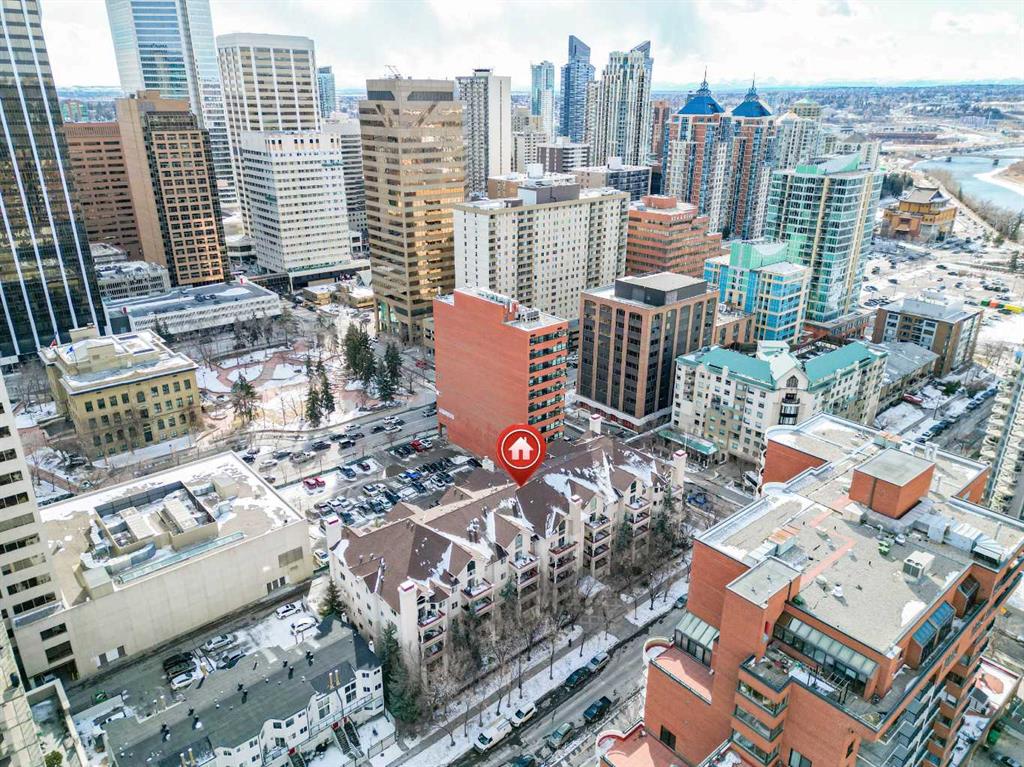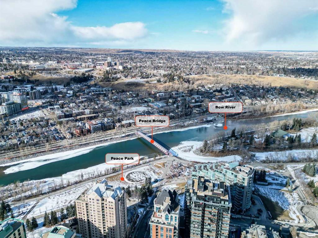 Welcome to Unit 215 at Pavilions of Eau Claire, an inviting 2-bedroom, 2-bathroom condo offering 854 sq ft of comfortable living in one of downtown’s most desirable locations. Just steps from the Bow River and scenic pathways, this home places you close to the vibrant amenities of Eau Claire while still offering a peaceful residential feel. The spacious kitchen is well-appointed with stainless steel appliances and stone countertops, opening seamlessly into the bright living and dining area where a cozy corner fireplace creates a warm focal point. Durable hard flooring runs throughout the home, making cleaning and maintenance effortless. The large primary suite features a private 3-piece ensuite, while the second bedroom and full bathroom provide flexibility for guests, a home office, or additional living space. A dedicated in-suite laundry room with extra storage adds everyday convenience. Step outside to the generous south-facing balcony, perfect for enjoying sunshine and city views. Residents also enjoy access to building amenities including a billiards room. Ideally located near the river pathways, Prince’s Island Park, Peace Park, the iconic Peace Bridge, and countless downtown amenities, this is an excellent opportunity to enjoy the best of inner-city living.