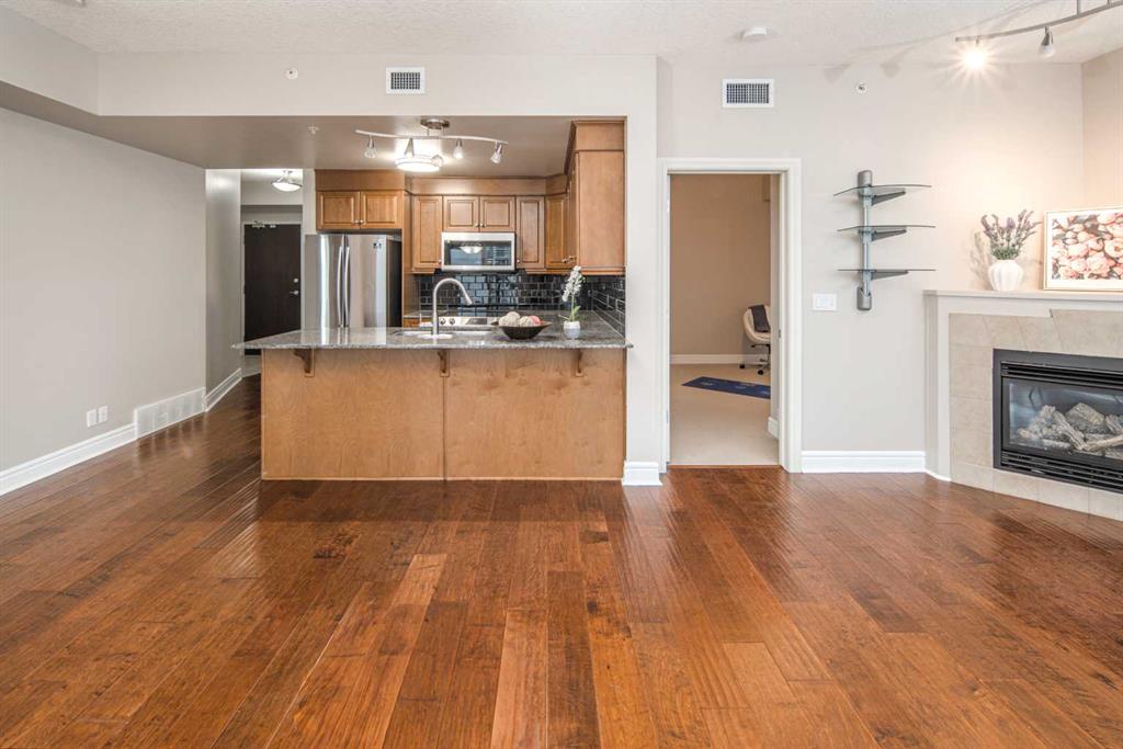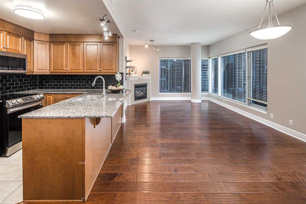Welcome to the Executive SE Corner Unit in Prestigious Five West – Exceptional Value! Experience downtown living at its finest in this executive, air-conditioned 2-bedroom + den, 2-bathroom corner suite on the 19th floor of the sought-after Five West. This stunning SE-facing unit showcases breathtaking city views and abundant natural light all day long. The gourmet maple kitchen features granite countertops, a breakfast bar, and stainless steel appliances including a refrigerator (2020) and microwave & stove (2023) and opens to a spacious dining area and bright great room with a cozy corner fireplace. Enjoy engineered hardwood floors, floor-to-ceiling south and east-facing windows, and a versatile den off the main entrance, perfect for a home office. The primary bedroom offers a walk-in closet and a luxurious 4-piece ensuite, while the second bedroom is generously sized and features a cheater 3-piece ensuite, ideal for guests or a roommate. Additional highlights include fresh paint throughout, in-suite laundry, 7-day concierge service, a titled heated underground parking stall, and an assigned storage locker. Building amenities include an owner’s lounge, car wash bay, and indoor visitor parking.Ideally located steps to the LRT, river pathways, and downtown core, this home offers the perfect balance of convenience, comfort, and style. Pride of ownership throughout — an exceptional home for professionals or couples!