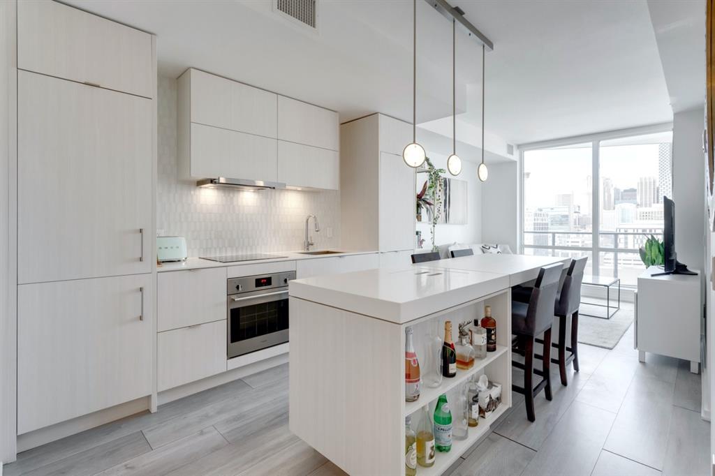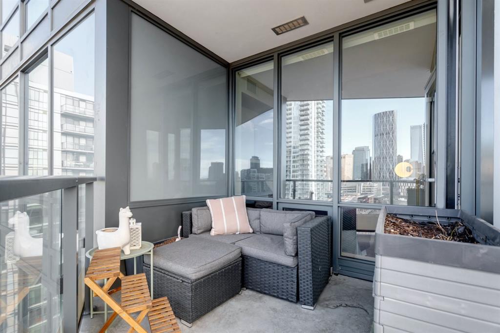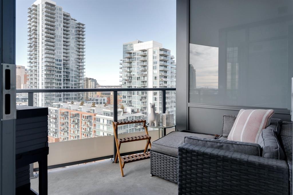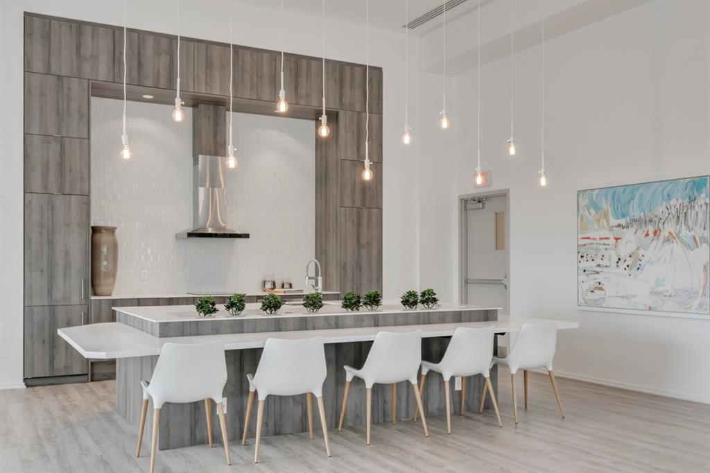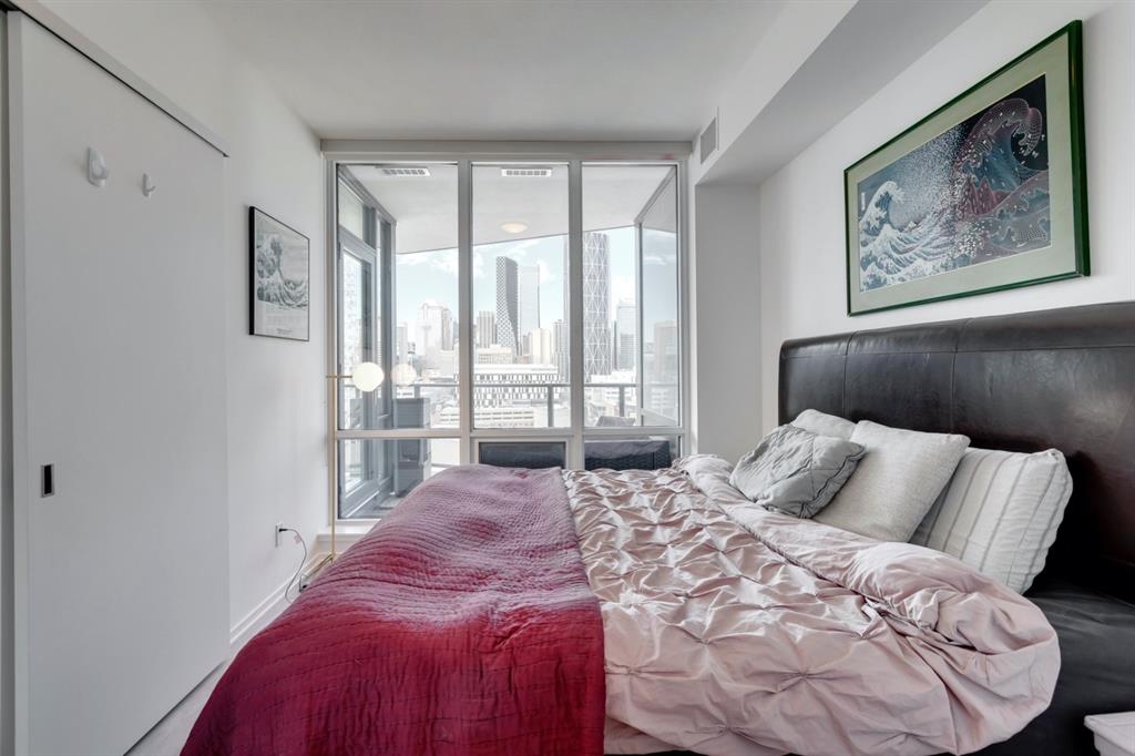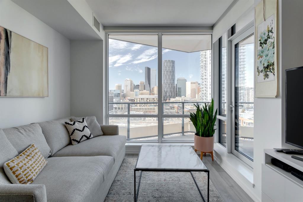 City lights, mountain views, and world-class dining and entertainment await at the ultra-modern Verve in Downtown East Village. This one-bedroom plus massive den showcases contemporary design by Cecconi Simone, with thoughtful finishes throughout. The Euro-inspired kitchen features stainless steel built-in appliances and quartz countertops, while the sleek bathroom is finished with oversized floor-to-ceiling tile. Expansive windows flood the home with natural light and frame sweeping city and mountain views. Pets are allowed at the Verve but none have lived in this space. The striking exterior combines fritted glass, colourful vertical accents, and geometric balconies, creating one of East Village’s most recognizable towers. Inside, residents and guests are welcomed by a sculptural fireplace and in-house WiFi in the lobby. Amenities are designed for both relaxation and entertaining. Work out in the fitness studio, unwind in a cabana beside the Zen garden, or gather around the outdoor fire pit after an evening walk along the river. The party room kitchen and resident lounge provide the perfect setting to host friends and celebrate special occasions. Step outside and discover everything East Village has to offer, all within walking distance. The world-renowned Central Library and Studio Bell, home of the National Music Centre, are just moments away, along with groceries, acclaimed restaurants, and scenic bike paths that follow the Bow River. One of Calgary’s most dynamic and evolving neighbourhoods, East Village is colourful, sophisticated, vibrant, and full of energy—an urban community that truly has it all.