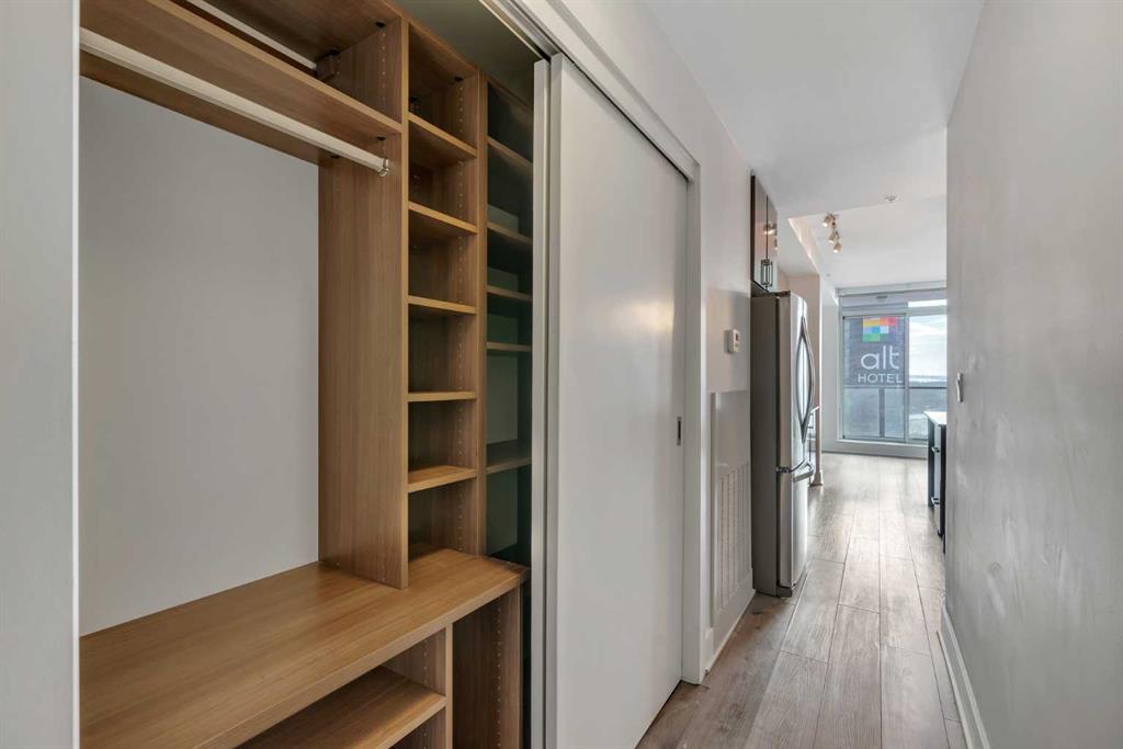 BOW RIVER VIEWS… PENTHOUSE PARTY ROOM.. STEPS TO RESTAURANTS, GYMS, DOWNTOWN AND MORE! Keep reading if you’ve been looking for an upscale 2 bed / 2 bath, river views and luxury amenities such as a penthouse lounge and gym… Plus, imagine stepping out your front door and onto the Bow River Pathway, where morning walks, bike rides, and river views become part of your everyday routine. Stepping inside, you’ll notice the front closet has custom cabinets - custom storage for all your shoes and jackets! Further in, floor-to-ceiling East-facing windows bring in tons of light and give you clear views over the river and surrounding area. Step out onto your private balcony and you’ve got a great spot for coffee with a view in the morning! Back inside & towards the kitchen, space maximizing features have been designed into the home. Kitchen island doubles as a 4 person dining table, built-in low profile appliances and a vertical herb garden/extra pantry space. The kitchen opens up to the spacious living room with built-in media wall. The master bedroom features floor-to-ceiling windows with river views and comfortably fits a queen bed with space left over. A walk-in closet with custom shelving and a 3pc bath with a walk-in shower and full-height tile surround completes this room. Around the corner is another 4pc full bath with a soaking tub and the 2nd bedroom. The 2nd bedroom has matching floor-to-ceiling windows and partial river views. All the appliances are included with the sale of this home including in-suite laundry. Also included with your new condo is the BEST parking stall on P1… No driving around in circles just to park your car, an assigned storage locker which gives you plenty of storage for large sports equipment or Christmas decorations. This luxury condo comes with a full suite of premium amenities including a full fitness centre, dedicated yoga studio, rooftop sky lounge with panoramic views, and multiple social/entertaining spaces including a conference room—perfect for hosting, working from home, or relaxing without ever leaving the building. If you do fancy a walk, you are just steps from St. Patrick’s Island Park, the Bow River pathway system, and countless shops, restaurants, cafés, and entertainment options. Enjoy close proximity to Studio Bell National Music Centre, the BMO Centre, Saddledome, Central Library Calgary, the CORE Shopping Centre, and Calgary’s bustling downtown business district. Commuting is effortless with quick access to transit and the free fare downtown LRT zone, putting the entire city within reach. Jumping in the car: Airport is a 16 min drive (17.5KM), & Banff is a 1 hr 30 min drive (128KM).