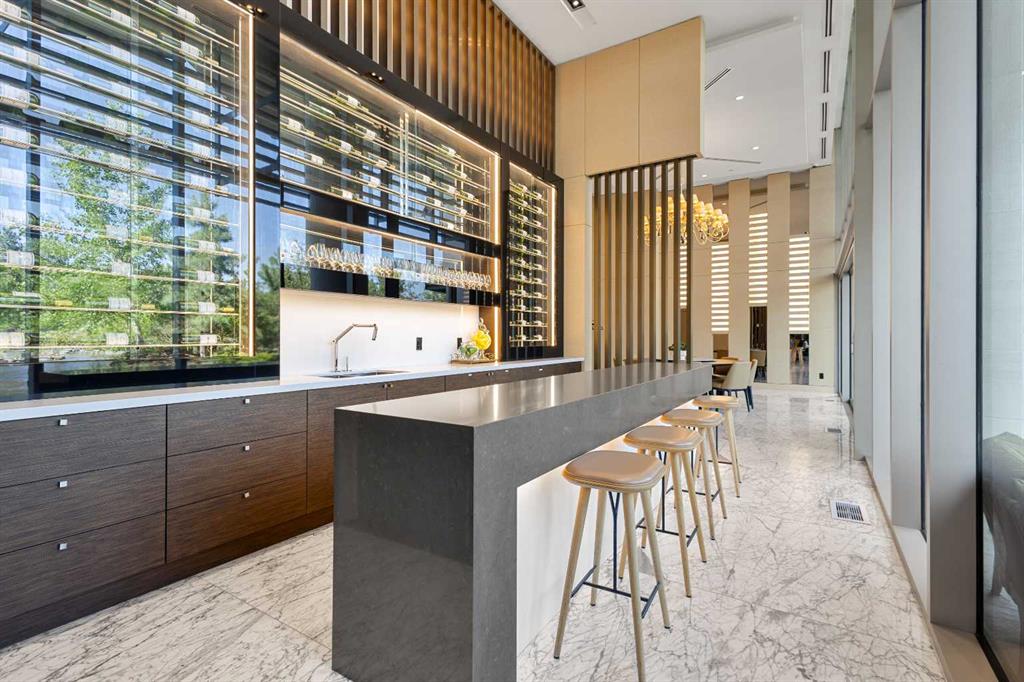 Welcome to The Concord – Calgary’s pinnacle of luxury living, perfectly situated along the Bow River, beside the Peace Bridge and Prince’s Island Park. This iconic residence sets a new standard for refinement, sophistication, and lifestyle. Arrive in style through the secure underground parkade, where your vehicle is pampered with a private wash before settling into your titled, fully upgraded 2-car private garage featuring custom cabinetry, epoxy floors, EV connection, and Wi-Fi connectivity. Take your private elevator directly to your riverfront unit, where floor-to-ceiling windows frame captivating Bow River views. The open-concept living area is adorned with wide-plank hardwood floors, timeless wainscoting, and elegant wallpaper, centered by a sleek gas fireplace. The chef-inspired Poggenpohl kitchen features Bianco Statuario marble, Miele appliances, and an oversized fridge—seamlessly blending into the spacious living and dining area. Step onto the oversized balcony for breathtaking park and river views. The master bedroom offers panoramic views, a custom Poliform walk-through closet, and a spa-inspired ensuite with a 66” freestanding tub, 10mm glass shower, double vanity, and in-floor heating. A second bedroom, marble-clad main bath with soaker tub, and a glass-enclosed den complete the thoughtful layout. Smart home automation, Control4 system, motorized blinds, built-in speakers, security cameras, and designer lighting offer effortless comfort and peace of mind. Exclusive Concord amenities include: Private winter skating rink with Zamboni; Outdoor kitchen with BBQ & firepits; Social lounge with full bar & kitchen; Guest suite; 24-hour concierge; Gym + yoga studio; Car wash bays. Experience riverside luxury living redefined - book your viewing today!