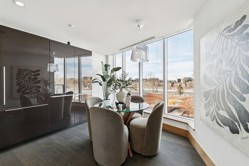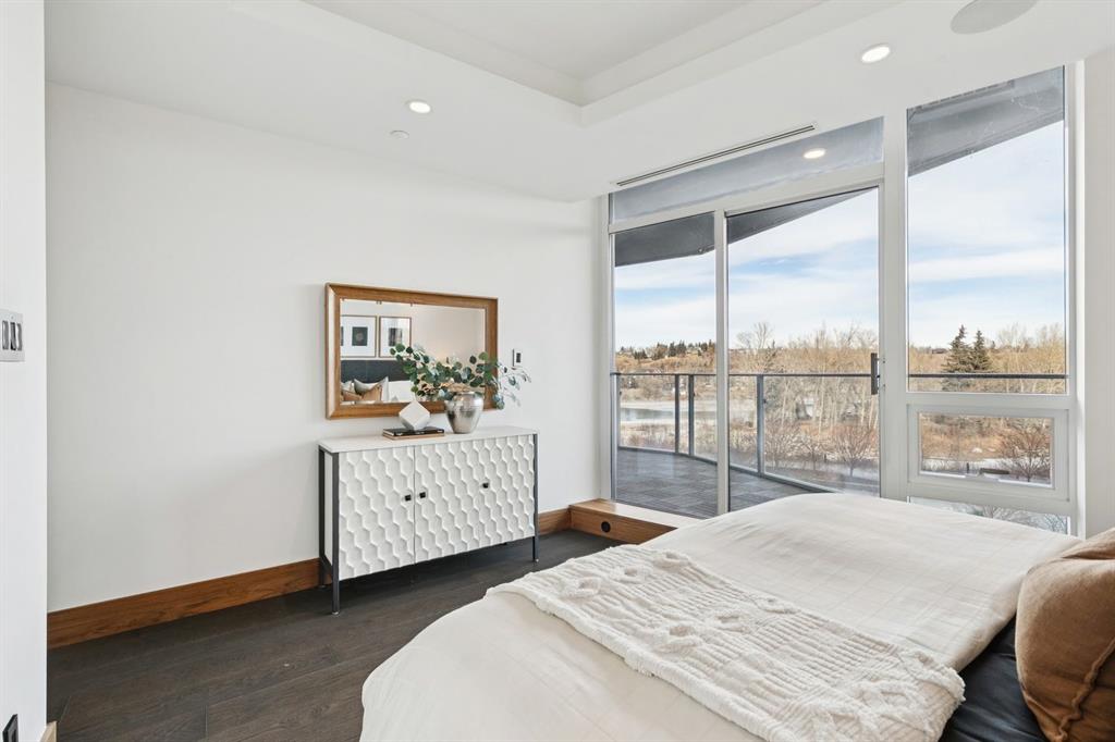 Amazing river views plus the epitome of luxury living in this exquisite original owner residence located in The Concord building, a prestigious address across from the iconic Peace Bridge in Eau Claire. A private elevator leads directly to your unit's foyer, ensuring exclusivity & privacy that is rare in urban living. Floor-to-ceiling windows facing the river flood the space with natural light, w/unobstructed NW & E views. Step inside through elegant double glass doors & be captivated by the open floor plan, which spans nearly 2,000 sq. ft. This stunning unit showcases features such as Control 4 automation, hardwood flooring, LED lighting, built-in speakers, marble finishes, and heated bathroom floors for added comfort. At the heart of this luxurious residence lies the Poggenpohl kitchen, equipped with white stone countertops, a spacious island that seats four, and top-of-the-line Miele appliances, including a gas cooktop, built-in refrigerator, and wine fridge—ideal for both cooking & entertaining. The formal dining room, adorned with a stunning chandelier, seamlessly flows into the expansive living room, which includes access to two private balconies—perfect for morning coffee or evening cocktails—while a cozy gas fireplace adds warmth. Journey down the hall to find the large primary bedroom, offering direct access to one of the balconies through generous patio glass doors. The opulent 5-piece ensuite features his/her sinks, a tall glass and marble shower, heated floors, & a luxurious jacuzzi soaker tub. The spacious walk-in closet ensures effortless organization. Bedroom two features glass patio doors leading to the same balcony, a large closet with built-ins, & a stylish 4-piece ensuite bathroom with a tub/shower combo & heated flooring. Indulge in exceptional craftsmanship & meticulous attention to detail throughout this remarkable residence. Custom built-ins, walnut wood accents, and a separate laundry closet reflect a commitment to quality and style. This residence includes Level 2 charging in the oversized private garage w/ one of the largest storage units, ensuring ample space for all your belongings. With a dedicated 24-hour concierge, every need is met with grace, allowing you to indulge in true luxury. The heated garage offers guest parking & a car wash facility, complete with a separate undercarriage wash, ensuring your vehicles stay pristine. The building's amenities enhance your living experience, featuring a state-of-the-art fitness center, an elegant party room, & a beautiful patio area with BBQ space overlooking a serene pond. In winter, this charming pond transforms into a picturesque skating rink, perfect for seasonal recreation. Experience the ultimate in luxurious living—call today to schedule a showing & take the first step toward making this extraordinary condo your new home. Embrace a lifestyle defined by elegance and Luxury.