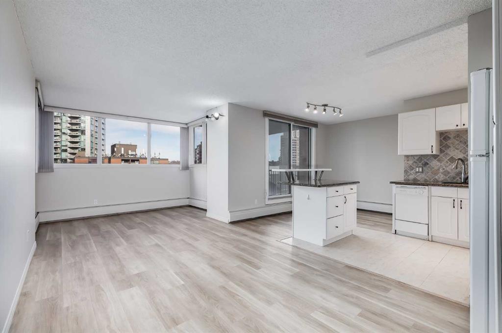 An EXCEPTIONAL OPPORTUNITY - Rarely do you find condos over 900 sq ft in downtown Calgary at this price - especially in sought after EAU CLAIRE. This bright and beautifully maintained CORNER UNIT offers exceptional space, functionality, and modern comfort in one of Calgary’s most desirable downtown communities. Featuring 2 bedrooms and 1 bathroom, this thoughtfully designed home showcases an open-concept layout filled with natural light thanks to its corner positioning and expansive windows. Recent updates include vinyl flooring, fresh paint throughout, and a brand-new dishwasher and mounted microwave, creating a fresh, move-in-ready feel. The modern kitchen is both stylish and practical, complete with granite countertops, an eat-up bar, and ample cabinetry - perfect for everyday living or entertaining. A true standout feature is the oversized walk-in pantry, offering storage space rarely found even in most detached homes. Enjoy the convenience of in-suite laundry and the comfort of heated underground parking, ideally located close to the parkade entrance and elevator for effortless daily access. Even better, ALL UTILITIES ARE INCLUDED in the condo fee, allowing for simplified monthly budgeting and exceptional overall value. Prince’s Crossing is a well-managed concrete high-rise offering an impressive range of amenities, including a fully equipped fitness centre complete with steam room, lockers, showers, concierge service, 24-hour security, daycare located within the building, and an on-site convenience store . Located just steps from the Bow River pathways, parks, restaurants, and everything downtown Calgary has to offer, this home offers the perfect blend of urban vibrancy and natural beauty. Spacious, updated, and exceptionally well located - this one truly checks all the boxes. Book your private showing today.