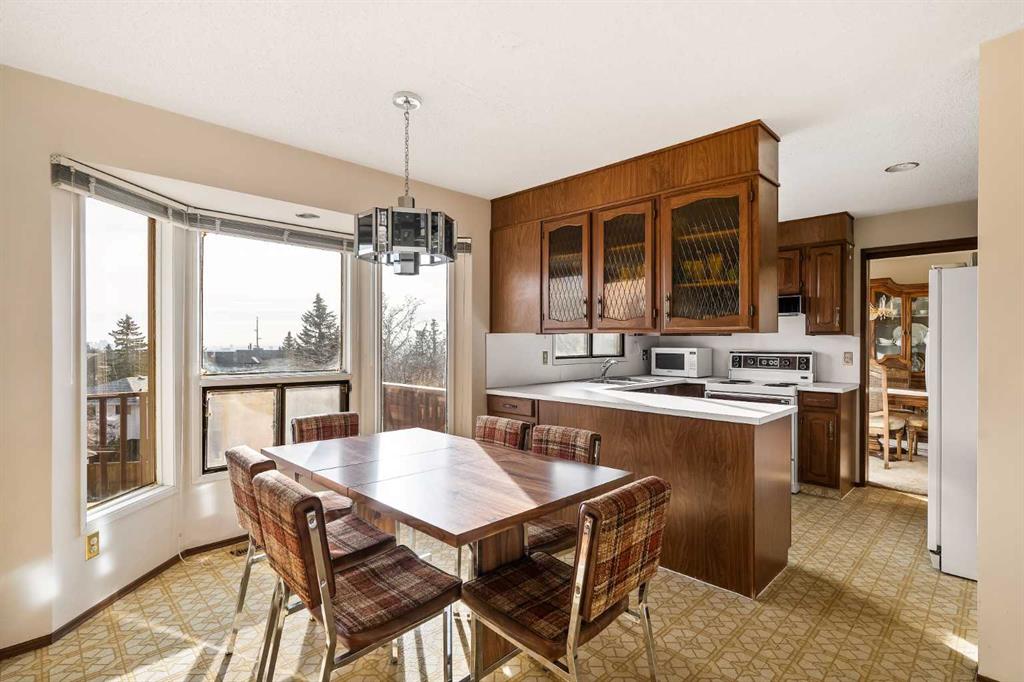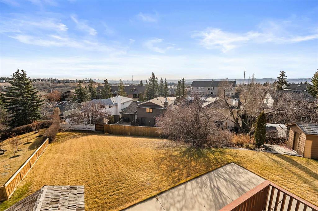 Welcome to 16 Edgeland Bay NW, a remarkable two-storey home in the prestigious community of Edgemont. Perfectly situated on a massive pie-shaped lot of over 11,100 sq. ft., this property enjoys a quiet cul-de-sac location and offers sweeping panoramic views of the city skyline—a true one-of-a-kind setting. The exterior showcases a timeless design with a striking blend of brick and wood siding, complemented by painted trim accents. A covered front porch creates a welcoming entrance and adds charm to the façade. Inside, the main level offers a thoughtful and spacious layout featuring a bright living area, a formal dining room, and a kitchen complete with appliances and plenty of cabinetry. Adjacent to the kitchen is a cozy nook and a family room highlighted by a classic brick wood-burning fireplace with a full mantel, creating the perfect spot for relaxing evenings. This level also includes a 3-piece bath, laundry room, and convenient access to the first balcony, where you can step outside to enjoy the breathtaking city views. Upstairs, the home provides ample family space with three bedrooms. The primary suite features its own 4-piece ensuite, walk-in closet, and a private balcony overlooking the city. While the second and third bedrooms are accommodated by a shared 3-piece bathroom. A spacious bonus room complete the upper level, offering multiple spaces to relax and enjoy the views. The walk-out basement extends the living space and is fully finished with a huge family/recreation room, a dining area, and a second kitchen—perfect for multi-generational living or entertaining. A 2-piece bath, plus an unfinished storage and utility room, provide both functionality and flexibility. Step outside to the concrete patio, an ideal setting for outdoor gatherings. The expansive backyard is beautifully maintained and features not one but two garden sheds for extra storage. With its size, privacy, and sweeping views, the yard is a true outdoor retreat. This home also features upgrades such as a new hot water tank (replaced in 2021), new furnace (replaced in 2012) and a new water softener (replaced in 2012). Located in the highly sought-after community of Edgemont, residents enjoy top-rated schools, abundant parks and pathways, and easy access to shopping, transit, and major routes. Don’t miss this rare opportunity to own a view property on an oversized lot in one of Calgary’s most desirable communities. 16 Edgeland Bay NW offers space, character, and unmatched potential—schedule your private showing today!