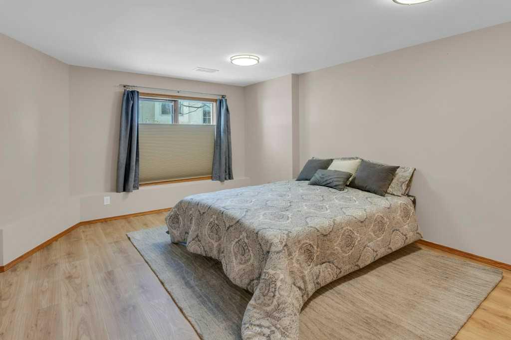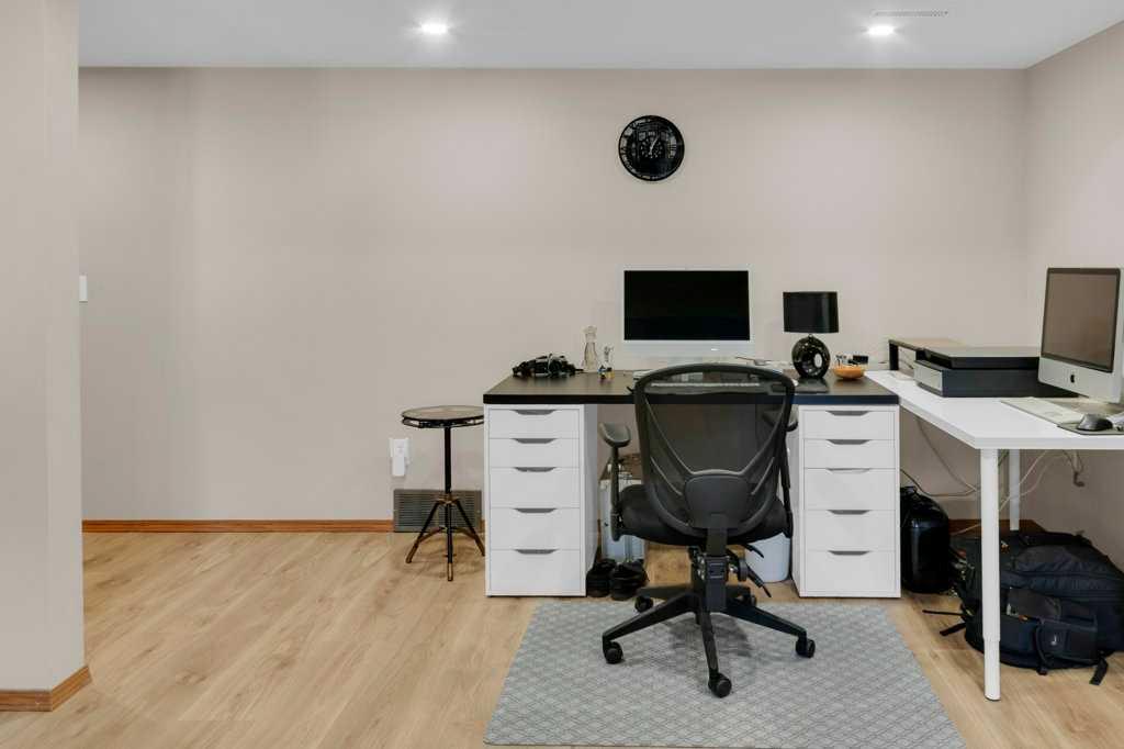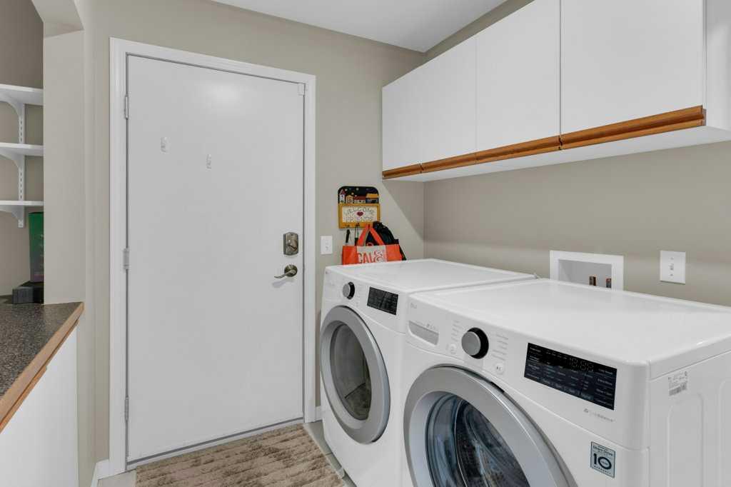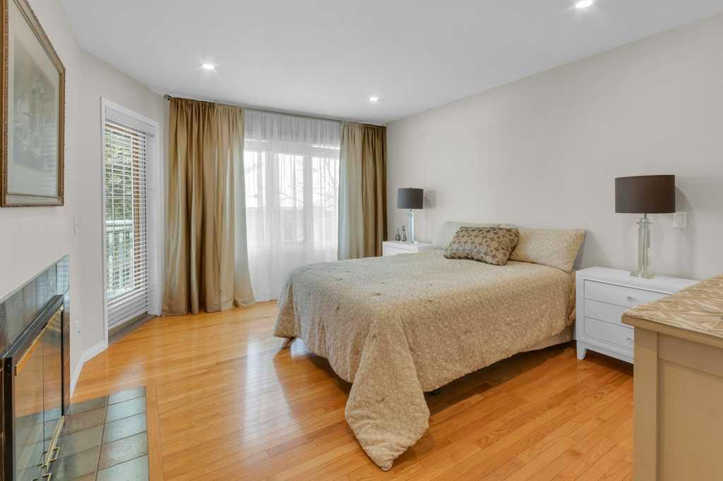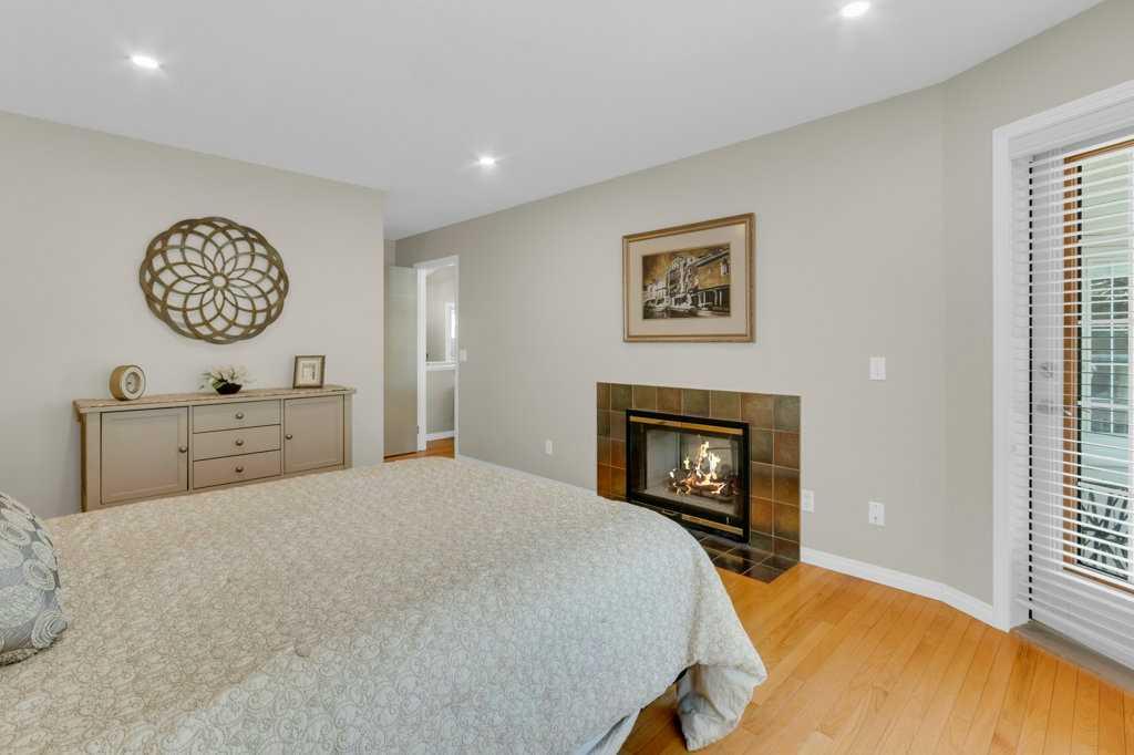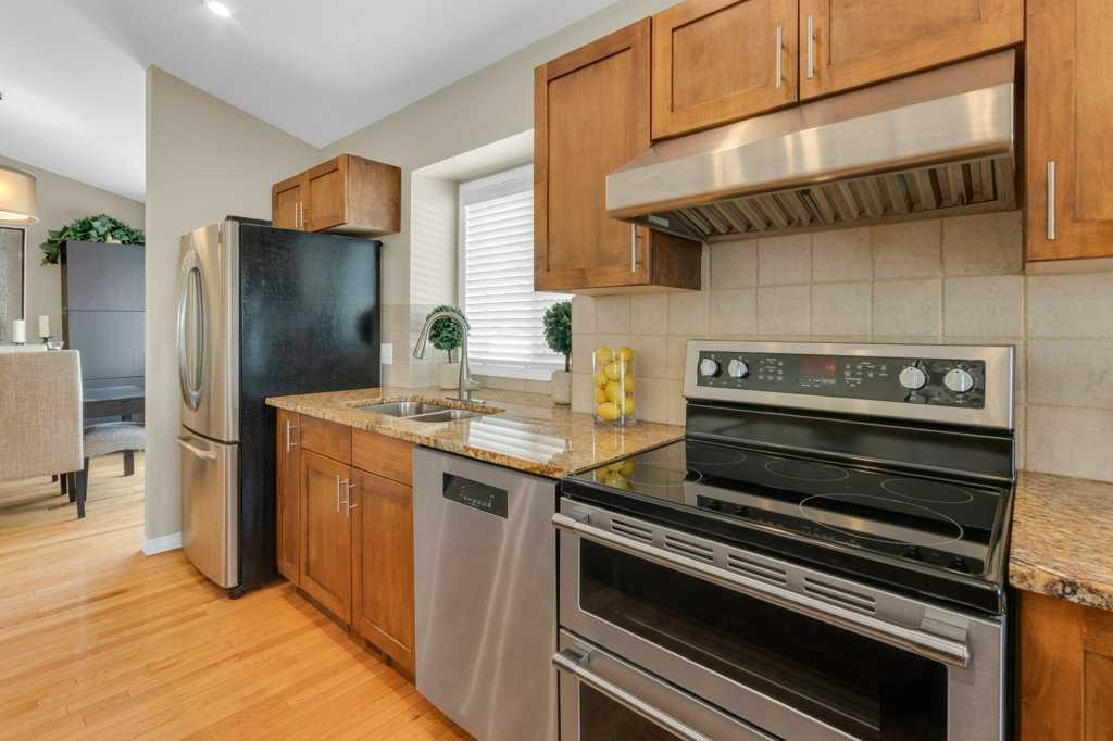 Welcome to this exceptional luxury walkout villa with an attached double garage, perfectly positioned on a premium corner lot within a beautifully maintained and highly sought-after complex. Thoughtfully designed and extensively upgraded, this home offers an ideal blend of elegance, comfort, and low-maintenance living. The open-concept main floor is highlighted by rich hardwood flooring and soaring vaulted ceilings, creating an inviting space ideal for both everyday living and entertaining. The chef’s kitchen is the heart of the home, featuring a striking 16-foot granite island and abundant cabinetry, seamlessly flowing to the deck with a gas line for barbecuing. A formal dining room and separate nook provide flexible gathering spaces, while the living room showcases a stunning double-sided fireplace shared with the spacious main-floor primary suite. The primary retreat includes a walk-in closet and a luxurious five-piece ensuite. A den/home office, powder room, main-floor laundry, and quality Hunter Douglas blinds to complete the level. The lower level walkout expands the living space with a large family room featuring an electric fireplace, offering a warm and versatile area ideal for relaxing, entertaining, or incorporating a home office. This level also offers a generous bedroom, a four-piece bathroom, an impressive full-width storage room, and direct access to a private patio, perfect for quiet mornings or relaxed evenings outdoors. Additional highlights include central air conditioning, a high-efficiency furnace, poly-B plumbing fully replaced, Luxury Vinyl Plank in lower level, flat painted ceilings, and numerous LED pot lights for a modern, polished finish. Beyond the home, residents enjoy a warm and welcoming community with optional summer gatherings at the central gazebo and an annual Stampede barbecue, creating relaxed opportunities to connect and build lasting friendships. Conveniently located close to shopping, transit, and Stoney Trail, this beautifully upgraded villa offers an exceptional lifestyle in a truly special setting. A rare opportunity to enjoy luxury villa living in a friendly, community-focused environment.