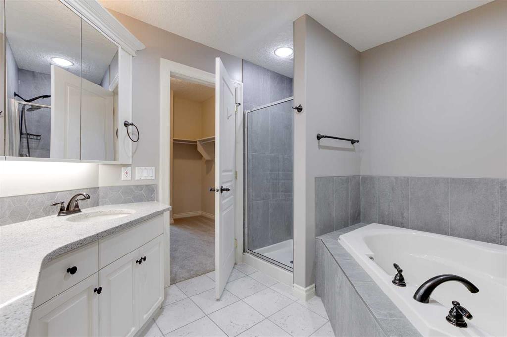 The Master bedroom feels like a retreat, complete with a 5-piece ensuite, corner tub, separate shower, and a generous walk-in closet. In-suite laundry and a pantry/storage room are thoughtfully tucked beside the kitchen, keeping everything practical and within reach.