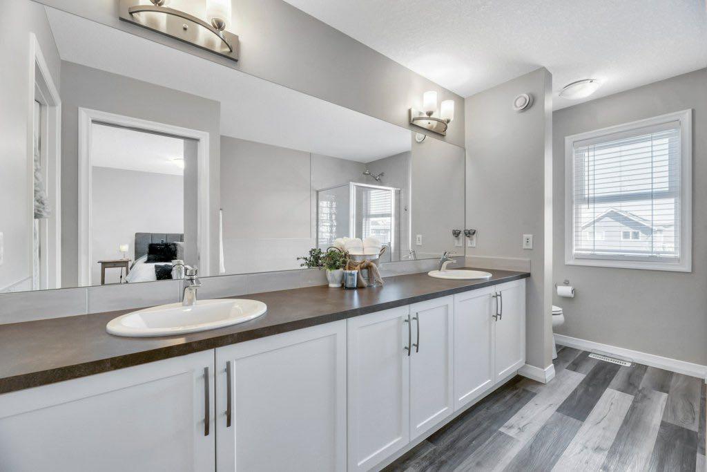 Amazing layout! Fall in love with your new home in the vibrant, family oriented community of Evanston. This unique side by side home offers modern stylish finishes and a super functional layout on a prime corner lot. Striking red siding, contemporary architecture, well maintained landscaping and the coolest weather resistant fence made from bamboo make this property stand out from the crowd. You’ll feel at home right away as you step into the bright and sunny living space with its soaring vaulted ceilings and spacious open concept layout with tons of windows. You’ll love the well planned kitchen with popular white cabinetry, gleaming stainless steel appliances, quartz counters and a centre island with seating for friends and family to gather. A cute little coffee or appliance station leads to your oversized pantry / storage room. The kitchen is also open to the dining area and a back door leads to your deck for easy access for grilling and outdoor dining. 2 more closets on this level provide ample storage for outer wear and other items. The second level of this home has one bedroom plus a full bath creating a perfect private space for a child or teen’s room, guest room or maybe a home office. The spacious owner’s retreat is on the top level. The 5 pc ensuite includes his and hers sinks, a good sized soaker tub and a separate shower plus there is a generous walk in closet. You’ll love the convenience of upstairs laundry and the vaulted open hallway takes advantage of the many windows on the main level creating a bright and open feel. You can expand your living space as needed in the clean, dry and unspoiled basement. Big windows give you the opportunity to add additional bedrooms if desired. The backyard has a nice deck and plenty of grassy area for kids and pets to play plus there is room to add a garage with back alley access. You are going to love living in Evanston. This modern suburban community offers an abundance of green spaces, great local schools and access to all urban amenities and major roadways. Don’t miss your chance to call this one home.