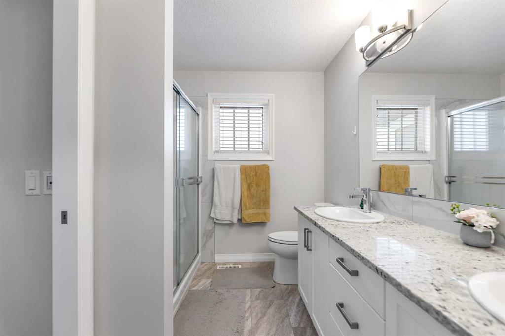 Welcome to this beautifully maintained 3-bedroom, 2.5-bathroom end unit townhouse offering style, space, and convenience! Located in a desirable neighborhood of Evanston, five minutes drive to Stoney Trail, fifteen minutes drive to Calgary Airport, this home features a double garage, fully developed backyard and a functional, open-concept layout that’s perfect for modern living. The main floor showcases durable laminate flooring, a bright and spacious living area, and a well-appointed kitchen that flows effortlessly into the dining space—ideal for everyday living or entertaining. Upstairs, you'll find three generously sized bedrooms, including a primary suite with a private 4-piece ensuite and walk-in closet. The unfinished basement offers endless possibilities for future development—whether you need extra living space, a home office, or a gym. This end unit offers extra privacy, added natural light, and the bonus of a rear deck—perfect for relaxing or BBQs year-round. Whether you're a first-time buyer, investor, or looking to downsize, this property is a must-see. There are solar panels on the roof to help reduce utilities at the peak of our beautiful Calgary weather conditions.