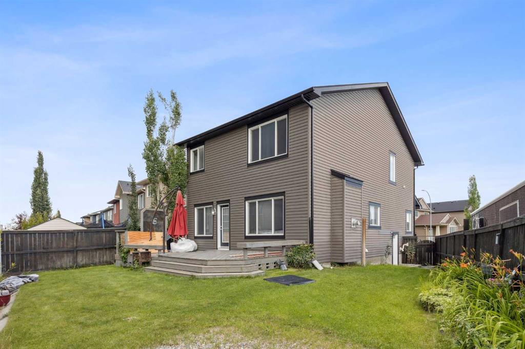This exquisite executive home is located on a pie-shaped corner lot in the vibrant community of Evanston. This home has been freshly painted and the roof and garage door have just been replaced. You are greeted by a spacious foyer and gleaming hardwood floors that continue throughout the main floor. The open floor plan and wall of windows overlooking the backyard allow for an abundance of natural light to fill the great room. The kitchen elegantly showcases ample rich cabinetry with granite counters and a large island. It features a gas range and a walk through pantry for extra storage. The great room is centered by a gas fireplace that will add ambience to your entertaining. A den and 2 piece bathroom complete the main floor. Upstairs there is a spacious bonus room with soaring vaulted ceilings that your family will love. The primary retreat is perfect for a king size bed and has a large walk-in closet and sumptuous ensuite bath with a deep soaker tub. There are two more good sized bedrooms plus a full bath and laundry room to complete the upper floor. The walk-up basement is fully developed into a one bedroom plus den legal suite with its own private entrance. It has its own kitchen, bath, living room and laundry. The suite could easily be used as an entertainment area with a wet bar as well. The large backyard will be your private oasis complete with a huge two-tier deck that was made for entertaining. Parking is a breeze with the double attached garage and concrete driveway. Call today!