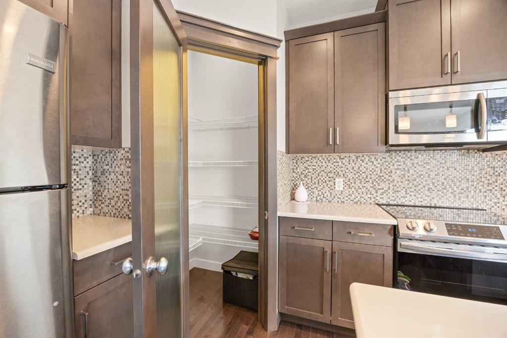 Step inside and be greeted by a dramatic 18-foot high ceiling foyer that sets the tone for this exceptional home. Discover 9-foot ceilings and gleaming hardwood flooring flowing throughout the main level, creating a bright and spacious atmosphere. The open-concept layout features a welcoming Living room with gas fireplace and built-in bookshelves—perfect for relaxation and entertaining. The well-appointed Kitchen showcases a centre island, quartz countertops, stainless steel appliances, tile backsplash, and corner pantry for ample storage. The spacious Dining area offers you the perfect setting for your family, also provides door access to your deck with aluminum railing, seamlessly blending indoor and outdoor living. A powder room completes the main level.