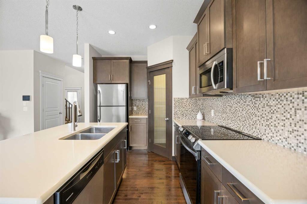 **OPEN HOUSE this SUN, Apr 19th at 2-4PM** No neighbours in front—facing a large soccer field! Welcome to this beautifully maintained 3+2 bedroom, 3.5-bath home in the sought-after community of Evanston, offering over 2,260 sq ft of total living space with recent upgrades and modern comforts throughout—perfect for growing families.