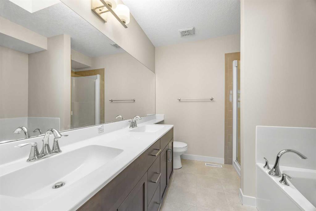 On the upper level, a sunny South-facing spacious Bonus room offers the perfect space for family gatherings, movie nights, or a playroom. The generous sized Primary bedroom provides a peaceful retreat with a walk-in closet and 5-piece ensuite bath featuring double vanity, soaker tub, separate shower, and skylight. Two additional well-sized bedrooms and a 4-piece bath complete this floor.