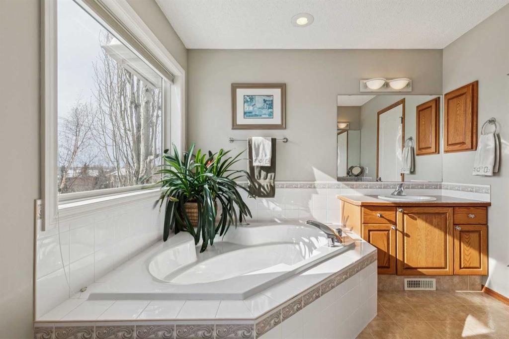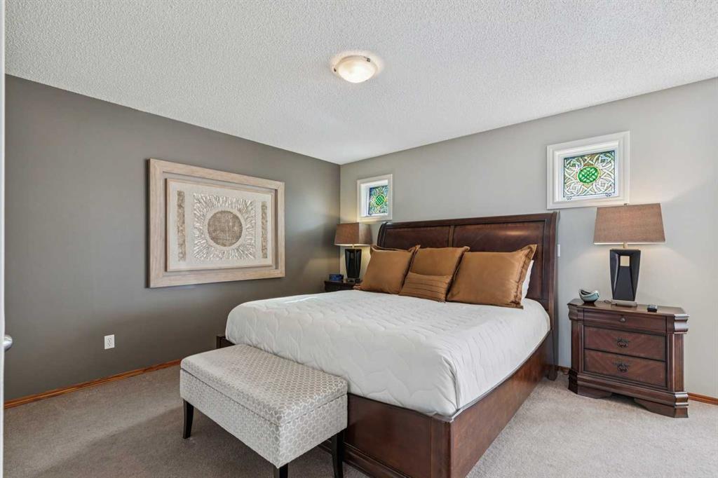 Beautifully maintained, custom-built two-storey home offering over 3,100 sq. ft. of fully developed living space, located in prestigious Evergreen Estates—southwest Calgary’s only true estate home community, Lovingly maintained and thoughtfully upgraded by the original owners, this home clearly reflects pride of ownership at every turn. Enjoy a spectacular curved staircase with custom spindle work, rich site-finished hardwood floors, nine-foot ceilings, and high-quality stainless steel appliances featuring a Fisher & Paykel six-burner gas stove. Enjoy a total of five bedrooms, four baths, two fireplaces, hotel-style primary ensuite bath. The high-end professional basement development includes full tile feature wall setup for surround sound, two bedrooms, full bath, rough-in for wet bar, new flooring and more. Soft rounded corners, main floor den, custom window coverings, new roof, A/C, heated oversized garage, and incredible landscaping with mature trees for privacy, stone patio, upper deck, and a cozy front porch to sit and watch the kids play. Evergreen Estates offers an exceptional walkable lifestyle, surrounded by expansive park spaces, paved pathways, and Fish Creek Park just steps from your door, with effortless access to the LRT, schools, shopping, and Stoney Trail.