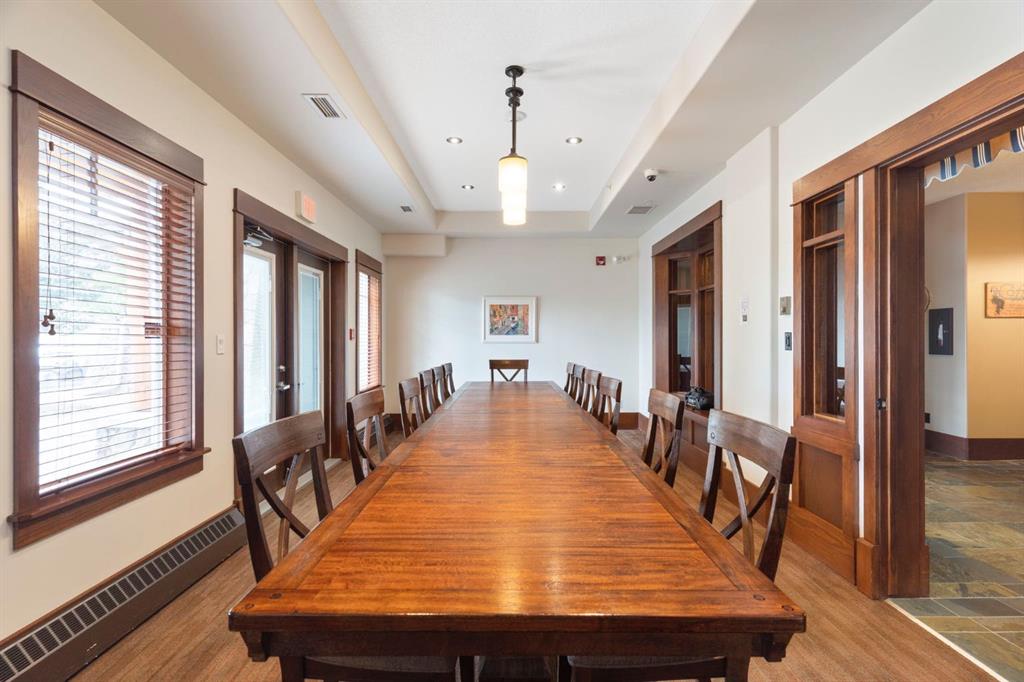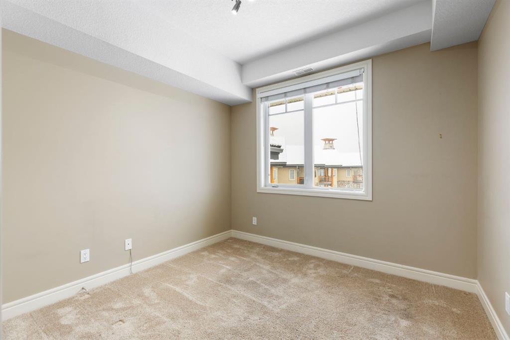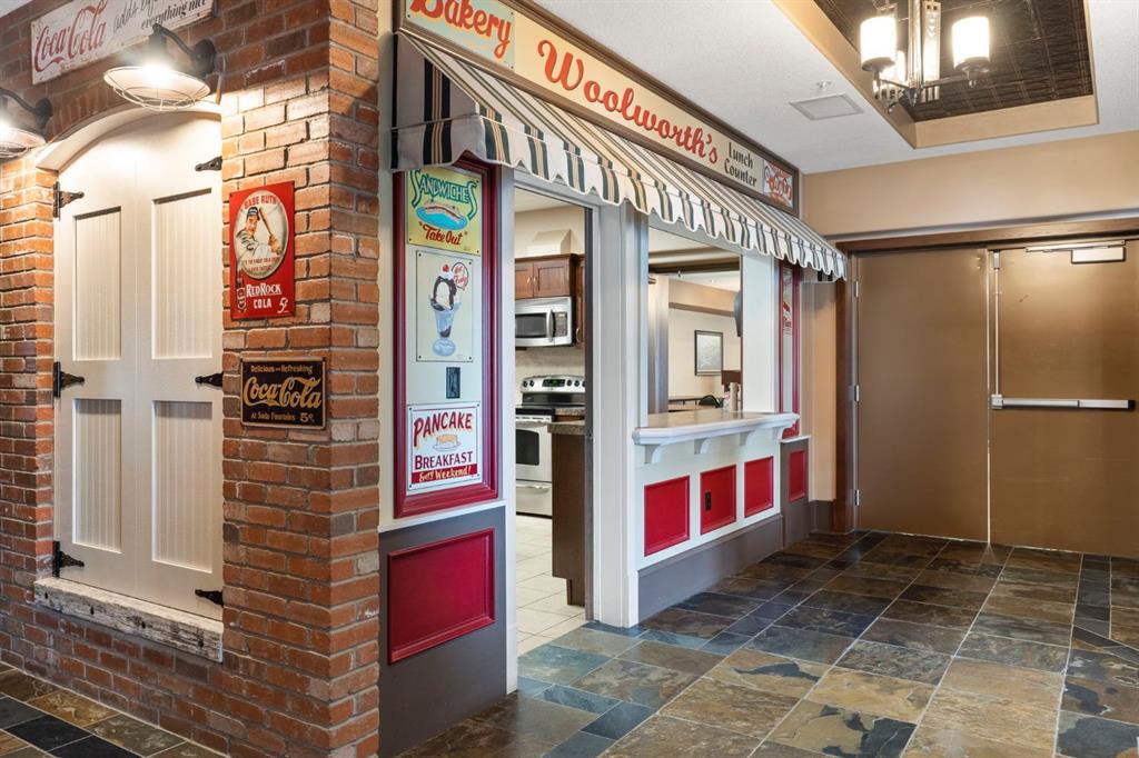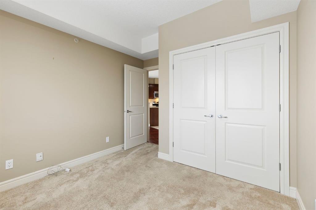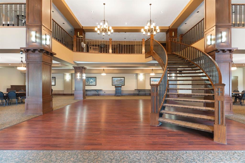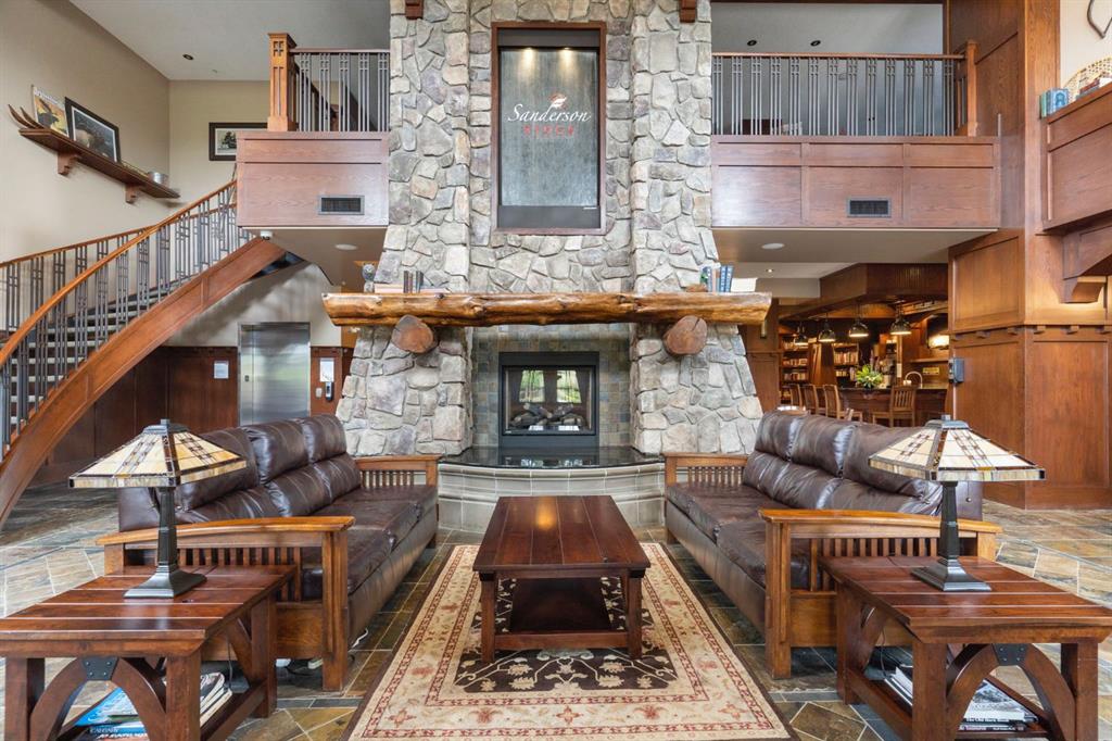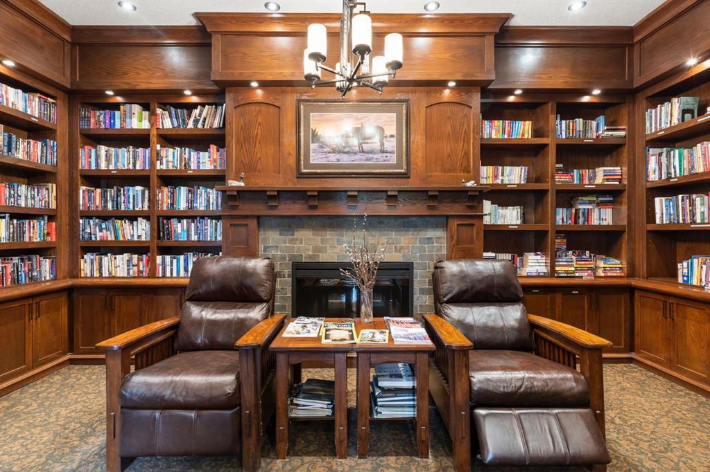 Located on the TOP FLOOR with DIRECT VIEWS OF FISH CREEK, this extremely well-kept two-bedroom, two-bathroom unit is in the prestigious Sanderson Ridge complex in Evergreen. Entering your top-floor unit, where no one lives above you, you'll notice the hardwood floors, a well-kept kitchen with granite countertops, stainless steel appliances, and a generous pantry. The sink overlooks your bar seating, dining room and living room with views for miles, even reaching downtown where you can see the fireworks during Stampede. The living room also features an electric fireplace and space for your tv. Stepping onto your oversized deck, which is reinforced with solid log beams, you'll be in awe of your surroundings. This patio is incredibly unique because it offers direct views of the courtyard, Fish Creek Park and downtown Calgary, very few units have this premium location. The primary bedroom also has stunning views, enough space for a king-size bed and opens into a four-piece ensuite with dual vanities and a walk-in closet. The secondary bedroom shares the same views as the living room and primary bedroom which would make it a great option for a bedroom, office or den. A three-piece bathroom with a top of the line sit up soaker tub is just outside the secondary bedroom and the in-suite laundry is just a few steps away. Sanderson Ridge offers a lifestyle everyone dreams of but few are able to enjoy. With every amenity you could ever want, this is retirement living at its finest. Amenities include: a pool, spa, gym, hairdresser, woodshop, wine cellar, coffee bar, library, car wash, theatre, bowling alley, craft room, and social room, poker room, billiards and gardening.