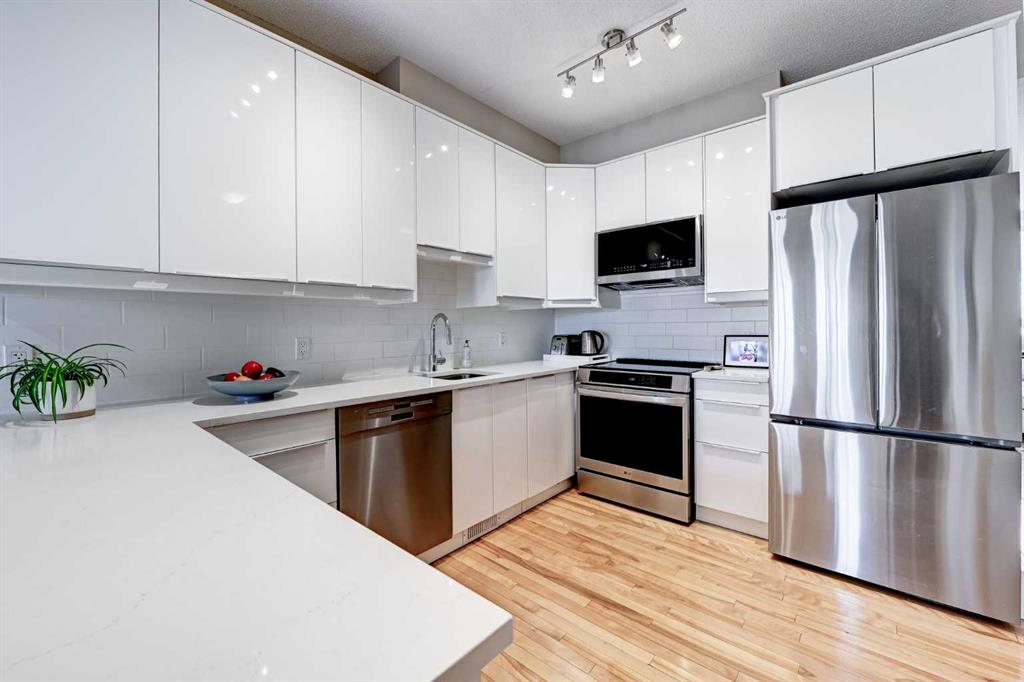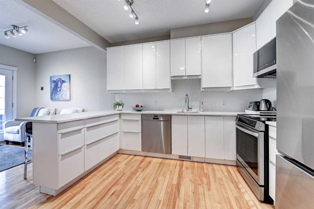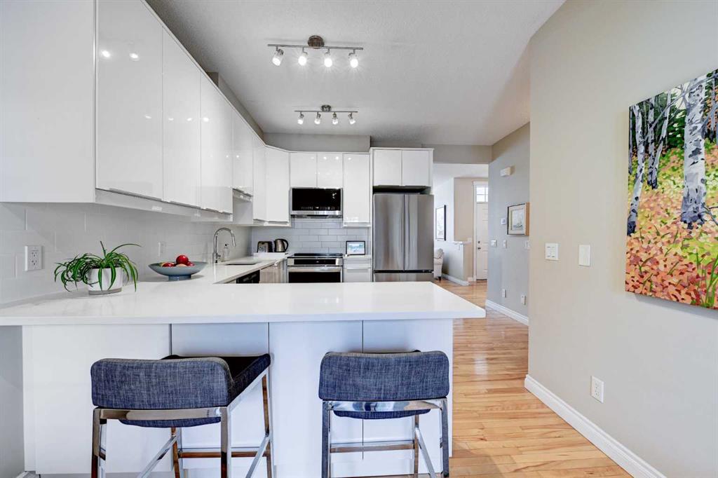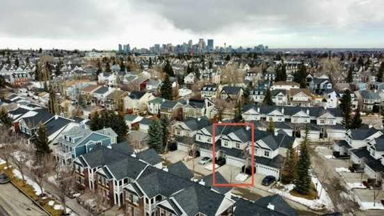 ** Open House Saturday, March 7th from 11:30AM - 1:00pm! ** Nestled in the quiet enclave of Brighton Court, this beautifully maintained Brownstone townhouse blends timeless design with modern convenience — all in the heart of Marda Loop, one of Calgary’s most vibrant communities. Offering over 2,247 sq. ft. of developed living space, the home features 3 bedrooms + office, 3.5 baths, and an inviting lower-level family room. Expansive windows and 9-ft ceilings fill the interior with natural light, complemented by birchwood flooring that flows across the main level. The open-concept main floor showcases a stylish living and dining area with an electric fireplace, while the modern kitchen impresses with NEW LG and Bosch appliances, quartz countertops, and a U-shaped breakfast bar. French doors lead to a fenced west-facing patio, perfect for summer evenings under the shade of a mature ash tree. Upstairs, you’ll find three generous bedrooms, including a primary suite with private balcony, walk-in closet, and spa-inspired ensuite. The fully developed lower level adds a cozy family room, guest bath, and ample storage. With a double-attached garage, central A/C, new Hardie board siding, and roof shingles, this home combines peace of mind with refined comfort. Located just steps from shops, cafés, and parks, and minutes from top schools like Lycée Louis Pasteur and Masters Academy, this spacious townhouse offers the best of Marda Loop living — spacious, walkable, and move-in ready.