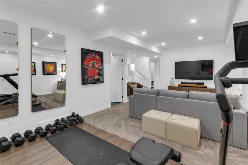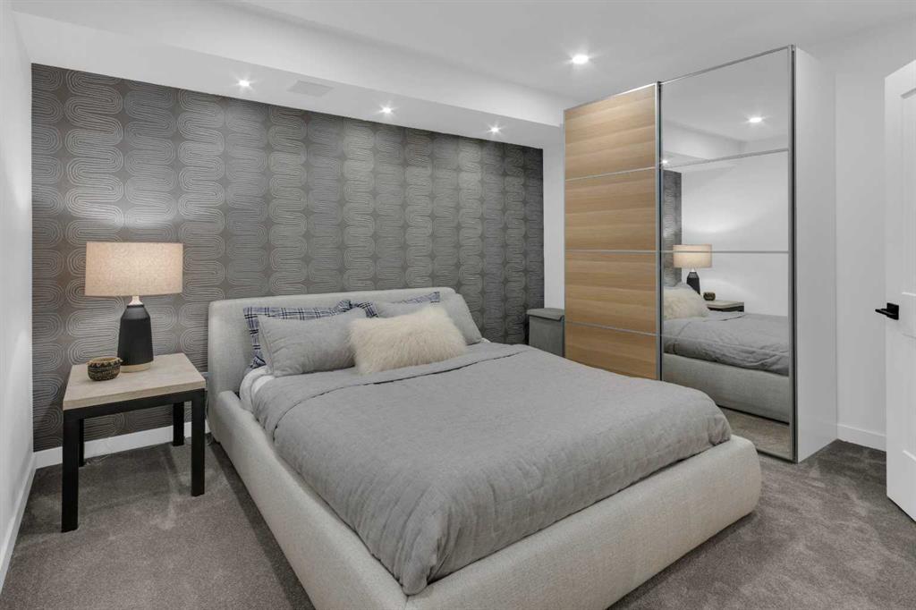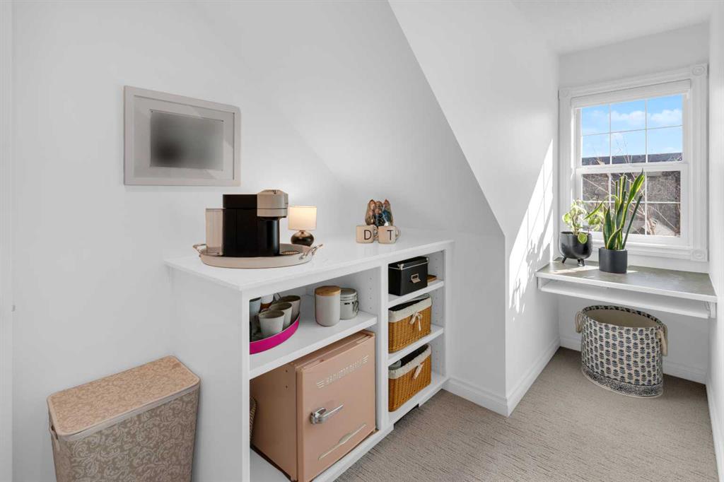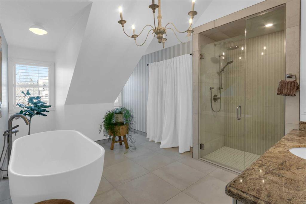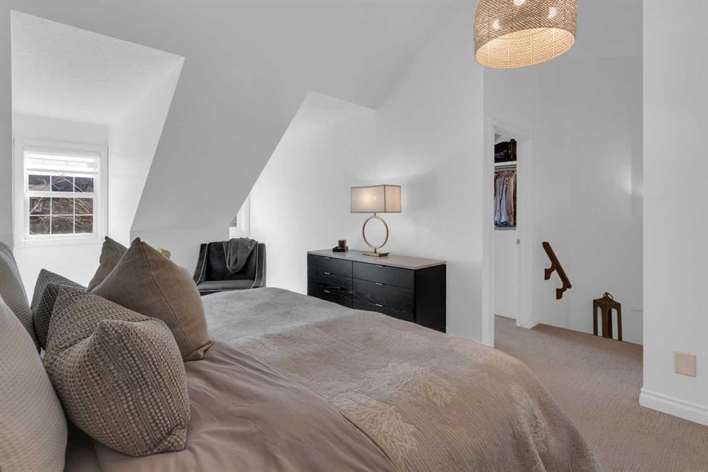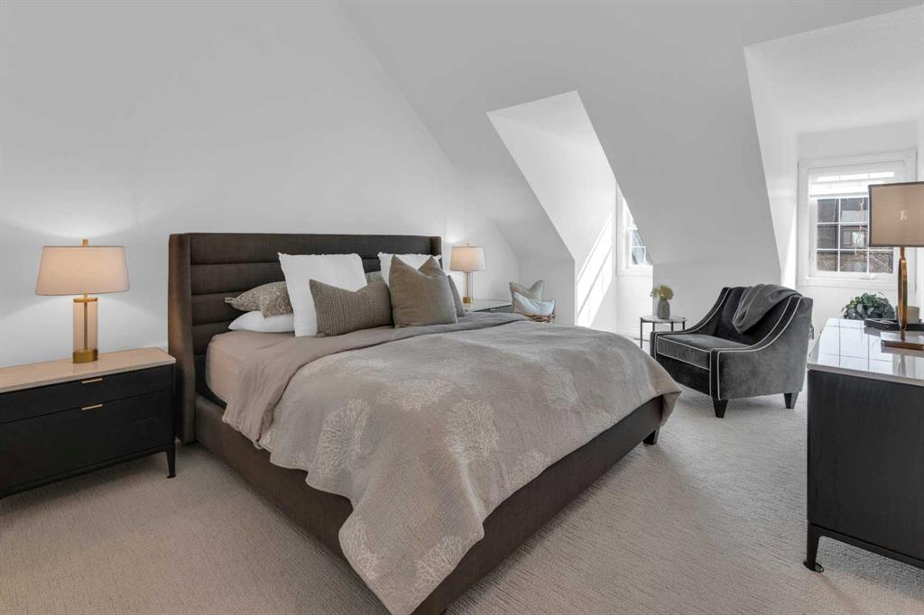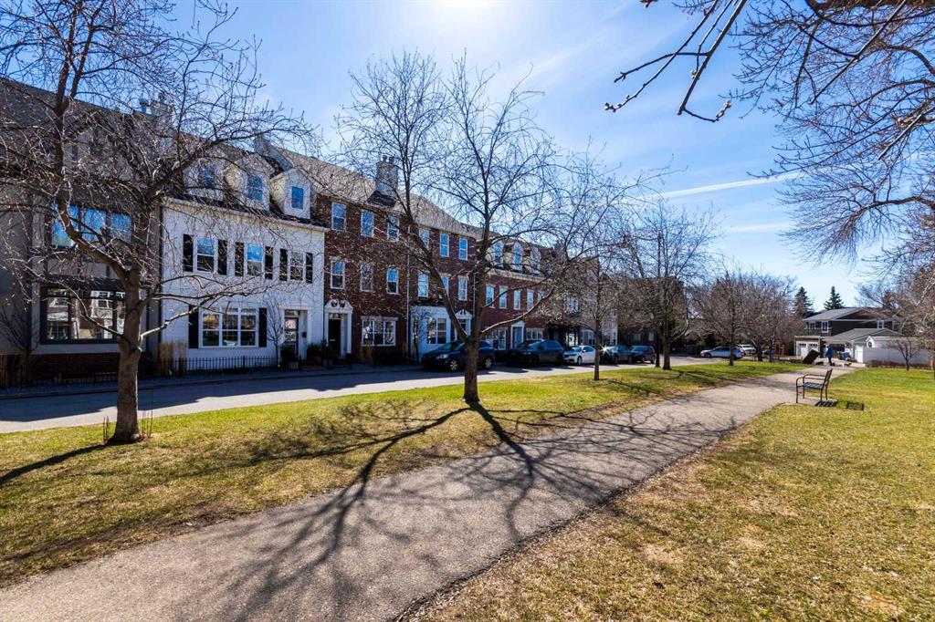 Welcome to this beautifully renovated 2,396 sq ft townhouse on one of Calgary’s iconic, tree-lined boulevards, complete with a central park and walkway. This impressive 3-storey home was extensively renovated in mid-2024. The French-inspired, elegant design reflects a focus on high quality, function, and refined detail. The main floor was reimagined to improve flow, including the relocation of the powder room and reconfiguration of walls. New site-finished hardwood with a modern matte finish was seamlessly integrated with the existing flooring. The stylish foyer features black and white harlequin tile, leading into an open-concept, light-filled living and dining area overlooking the boulevard. Updated lighting throughout the main floor elevates the space, while custom wall paneling carries throughout, adding architectural detail. The kitchen is a standout, with custom cabinetry, a large island, stone countertops and backsplash, and new stainless-steel appliances. The main floor is completed by a new powder room and a well-designed mudroom with plenty of storage, along with access to the private patio and insulated, drywalled double detached garage. Upstairs, the second level offers a large, warm, and inviting family room with a redesigned fireplace surround and new insert, a bright office with built-ins, a spacious bedroom, full bathroom, and a well-appointed laundry room with sink and new cabinetry, countertop, and flooring. The third floor is dedicated to the primary suite, a serene retreat with vaulted ceilings and dormer windows, finished in beautiful, light, neutral tones, along with two walk-in closets and a spacious, fully renovated ensuite featuring a glass shower, freestanding tub, and designer finishes, with French-inspired design details continuing throughout.The basement was fully developed from the studs into a warm, stylish additional living space, including a family room with gym (or office area), an additional bedroom, and a full bathroom with glass walk-in shower. Additional upgrades include a new furnace, humidifier, hot water tank, central air conditioning, updated cabinetry, flooring throughout, new appliances, window coverings, and more. The home was renovated with long-term living in mind, with consistent attention to quality and detail throughout all levels. Enjoy maintenance-free living with a lock-and-go lifestyle in one of Calgary’s most walkable neighborhoods, just steps from Safeway, cafés, restaurants, wine bars, boutiques, and fitness studios in sought-after Marda Loop.