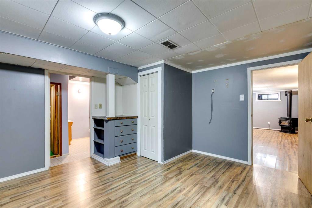 Welcome to a solid bungalow on a fantastic corner lot in Glenbrook—perfectly positioned with paved lanes on two sides and just steps from the community centre. This home offers a practical layout that feels open and comfortable the moment you step inside. A small entry area keeps jackets and shoes organized before you move into the bright living room, where large windows, a detailed ceiling design, and a wraparound flow toward the dining area help the space feel connected and social. The dining room includes a built-in cabinet for added function, and the kitchen features a pass-through opening to the living room plus extra storage. Down the hallway, the primary bedroom provides plenty of room and closet space, while the second bedroom features sliding doors leading directly to the back deck—great for airflow and easy outdoor access. A shared 4-piece bathroom completes the main floor. The finished basement adds even more value, offering a large recreation space equipped with a refrigerator, sink, and a wood-burning stove for warmth and atmosphere. You’ll also find a convenient utility/laundry room, an additional bedroom, another 4-piece bathroom, and even a functional sauna. Outside, the property really shines: a spacious yard with a large deck, a wood storage shed, room for a firepit, and plenty of cut firewood ready to go. The single detached garage provides excellent parking and extra storage. With its strong layout, corner-lot position, and generous lot size, this home is also a great option for rental potential or future development, giving you flexibility no matter your plans. Glenbrook is one of Calgary’s most welcoming communities—walkable, friendly, and close to everything. You'll love being minutes from schools, major roads, shopping, and parks, with a community centre that’s truly part of daily life. It’s a neighbourhood that feels established, convenient, and easy to call home.