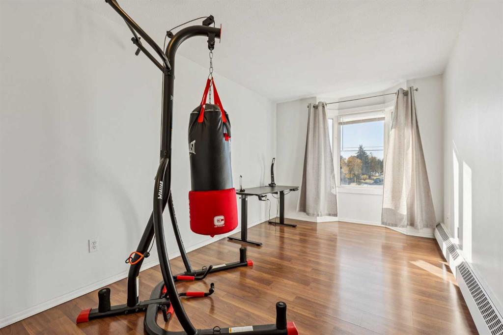 Discover Condo 215 at Landmark Gardens an updated 2 bed/2 bath corner unit with underground parking. Here are 4 things we LOVE about this home (and we’re sure you will too): 1. A FLOORPLAN MADE FOR LIVING: Offering 995 SqFt with 2 bedrooms, 2 full bathrooms, large living room and dining room/flex space this is a full-size home! As soon as you enter, you’ll be impressed with the natural light, spaciousness and liability of this condo. The living room easily accommodates your furnishings and is accented by a wood burning fireplace flanked by vertical windows on both sides to maximize the all-day natural light. The updated kitchen provided plenty of work/storage space while opening onto a good-sized dining area which could easily double as a home office depending on your needs/lifestyle. An over-size primary bedroom is perfectly equipped with walkthrough closet and 4-piece ensuite while the second bedroom is a great size as a kid’s room or guest accommodation. 2. THE BUILDING: Landmark Gardens is a pair of well-maintained four-storey, concrete buildings built in the early 80’s. The complex underwent a massive ($3M) exterior update completed in 2019 including new siding, insulation, vinyl windows, vinyl sliding doors and balcony railings. Condo fees ($856.48/month) include all utilities aside from electricity/TV/Internet. 3. LOCATION, LOCATION, LOCATION: As the city continues to expand in all directions the convenience of an inner-city neighbourhood is a breath of fresh air! You are 10 minutes to the Downtown core, a 10-minute bike ride to Laycock Park/playground which forms part of the Nose Creek Pathway system and a short dive to Deerfoot City with 50+ shops, services and restaurants. Commuting is a breeze with quick access to Centre Street and Edmonton Trail along with easy access to transit. 4. MORE THAN YOU EXPECT: From laminate flooring throughout to underground parking, updated kitchen, an abundance of in-suite storage, extra-long Southeasterly exposed balcony and a convenient central location this home check the boxes and is definitely worth your attention.
