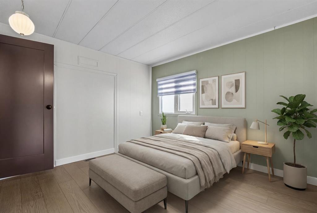 **OPEN HOUSE SUNDAY MARCH 29 FROM 2:00-4:00 PM **AFFORDABLE, PRISTINE & PERFECTLY PRICED TO SELL! This adorable 2 bed & 1 bath GEM is everything you could want. Good sized foyer / double closets (no lack of storage here). New luxury vinyl flooring & lighting throughout home, baseboard, casing, blinds, new floor grates, modern paint colours, new interior doors, wainscotting. Separate mud room leads out to back deck (new as well). Kitchen has new countertop, backsplash, double stainless sink, faucet, portable dishwasher (only 3 years old) moveable island, newer convection stove, microwave & fridge. The separate laundry room off the kitchen has the washer & dryer. Nice to have the laundry room tucked away instead of being in a hallway. This laundry room also gives you lots of cupboard space and room for brooms, vacuums etc. Off the kitchen patio doors to deck & 2 more closets, one in hallway and one just to the right of the kitchen. The open concept living/dining room has new paint, shiplap feature wall, lighting & blinds on the bay window. Both bedrooms are a good size separated by the bathroom (makes for perfect room mate/teen situation). The primary has wall to wall closets and the second bedroom is huge (used to be 2 bedrooms). The main bath Is completely renovated with new flooring, gorgeous vanity with his and her sinks, mirrors, medicine cabinet, soaker tub and comfort height toilet. Exterior offers newer front door, covered deck full length of home with xtra cupboards, new carpeting, painted exterior wood trim on side of home facing the carport, covered carport easily covers truck & smaller car, big shed & back yard that offers good amount of greenspace for the pets/kids or the gardener but not too much to have to maintain. Newer windows, roof, furnace (2011) & hot water tank (2011). Lease fee of $1,375 includes water, sewer, garbage pick up, snow removal, use of clubhouse, maintenance of playgrounds and pathways. There are pet restrictions such as weight & breed but none relating to children and/or age of occupants. Kids/grandkids welcome. This is a family oriented park. RV parking is available on site for a nominal fee. Transit service is throughout the park and school bus service as well. With Bowness Park (boat rentals, picnic area, & skating in winter) around the corner, the new Farmer's Market (with shops, restaurant & coffee shop within walking distance) & Superstore to name a few you will be pleased with all these amenities. Easy access to Stoney Trail, 50 minutes to the Mountains & 20 minutes to Downtown you've got it all! Greenwood is a community with mature trees throughout, walking paths, parks, bus service, walking distance to the new Farmers Market & great access to Stoney Trail for easy commutes to downtown etc. Whether you are downsizing, moving out of rental home, looking for a new lifestyle or just looking for affordability don't miss out on this upgraded home sweet home.