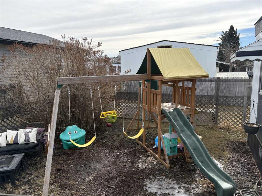 Welcome to your new home! Located on Cedar Way in the prime location of Greenwood Village, walking distance to the farmers market and shops, and quick access to Stony Trail and even better, the highway to the mountains. This home offers three bedrooms, one and a half bathrooms, a massive living room, separate dining area and a fully appointed kitchen, there is room for the whole family to have a space. Outside you will find a beautiful deck with access from both the front door and sliding doors from the hallway, there is a large children's play set in the backyard and still room to relax. Tired of clearing off snow, your vehicles will be tucked away in the covered car port, need extra storage, there is a massive storage shed conveniently located under the carport, plus and additional moveable shed in the yard. When summer gets a bit too warm, you'll be nice and cool inside with central air conditioning. This unit is located close to the playground and with lots of activities near by, its the perfect affordable place to call home!