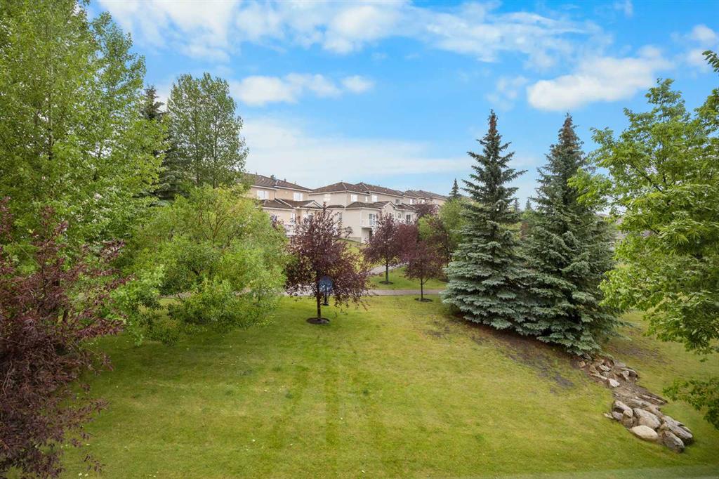 **OPEN HOUSE this SAT, Oct 25th at 12-2PM** Located in the prestigious community of Hamptons, this well-maintained and recently upgraded end-unit 2-storey townhouse offers a functional layout, peaceful green space views, and convenient access to nearby amenities. Upgrades include brand-new LVP flooring on the Main Level, new carpet on the upper-level, and fresh paint throughout the entire home. The Main Level features a spacious Living and Dining Room combo with a cozy gas fireplace, leading to a deck that overlooks a landscaped green space with trees and a walking path—nestled within the complex and surrounded by other townhomes. The Kitchen is equipped with a center island with eating bar, with a bright breakfast nook adjacent. A 2-piece bath and laundry area with extra storage complete the main floor. The home has also been freshly painted throughout.